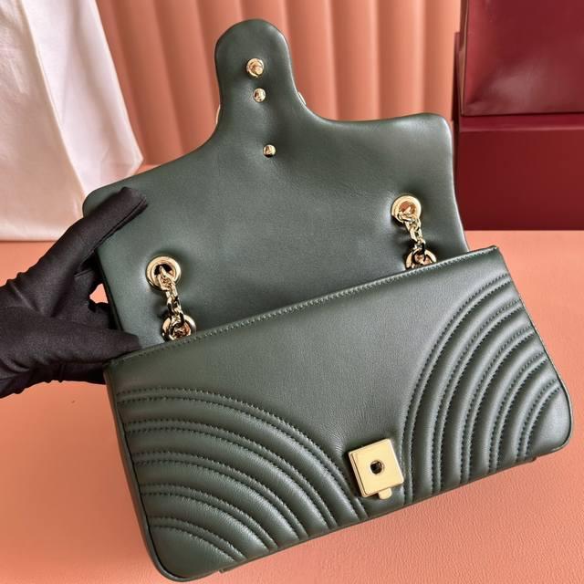 Features the brand's iconic GG Marmont series, crafted with meticulous attention to detail. The bag incorporates the iconic double-G design and faceted chain strap, crafted from supple leather to create a soft, streamlined shape. A clean, minimalist back pocket enhances the practicality of the medium and large sizes . Features include: Black V-shaped Matelass