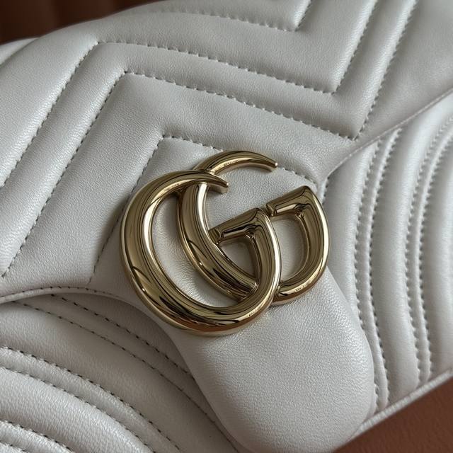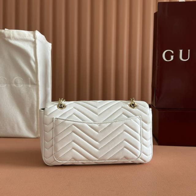 Features the brand's iconic GG Marmont series, crafted with meticulous attention to detail. The bag incorporates double-G hardware and a faceted chain strap, crafted from supple leather to create a soft, streamlined shape. A clean, minimalist back pocket enhances the practicality of the medium and large sizes. Features include: Black V-shaped Matelass