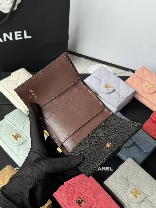 First release of a tri-fold wallet. New color, fine-grained cowhide. A new tri-fold wallet/card holder. At first glance, it looks like a card holder, but when you open it, you realize the front is a card holder for coins and bank cards, while the back is a wallet! Very novel. This is a limited edition at the counter; you might not be able to buy it even if you queue up now. Small bags are all the rage, a must-have! Super compact and practical, a must-buy! [Thumbs up] Two types of leather