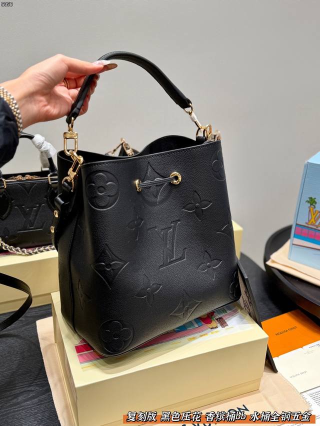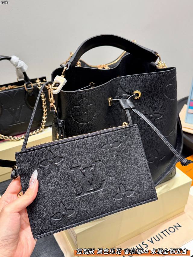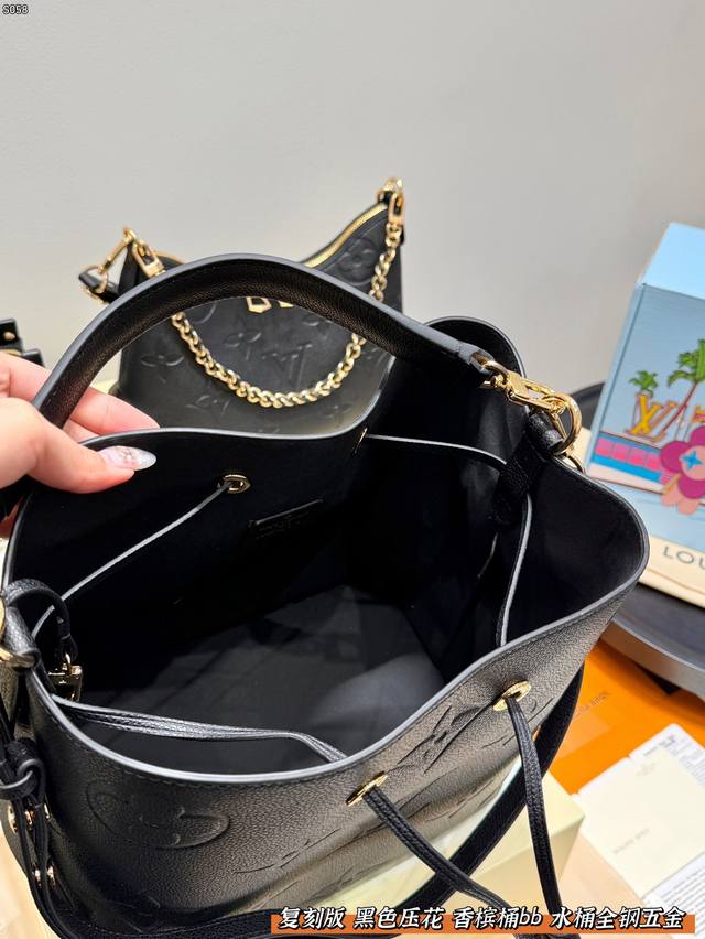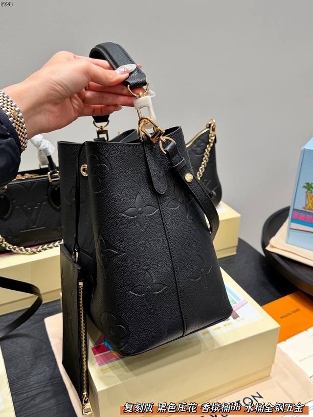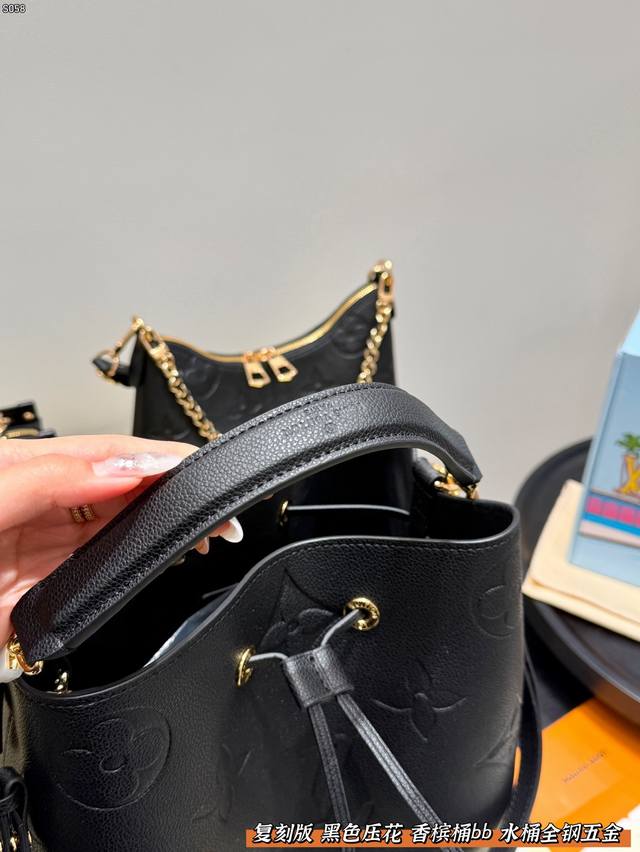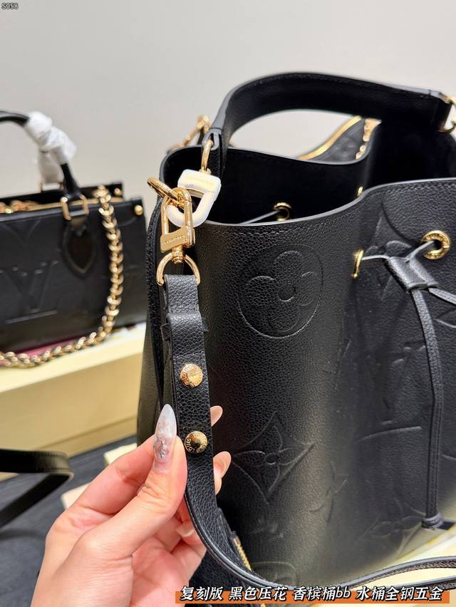 LV Bucket Bag Embossed Black Bb Champagne Bucket - Gentle and Elegant