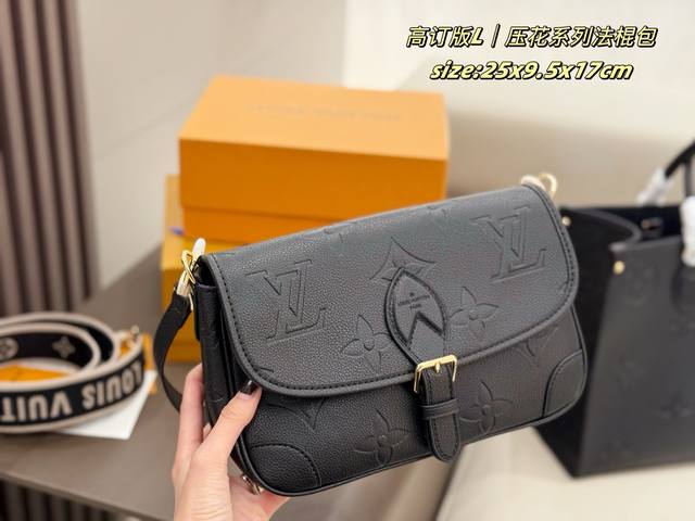 This Diane handbag is crafted from Louis Vuitton's classic Monogram Empreinte embossed leather, with the brand logo woven into the detachable wide jacquard shoulder strap. In addition to the detachable leather shoulder strap, a crossbody option is also available, flexibly matching elegant style or dynamic fashion.