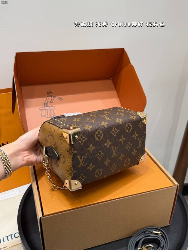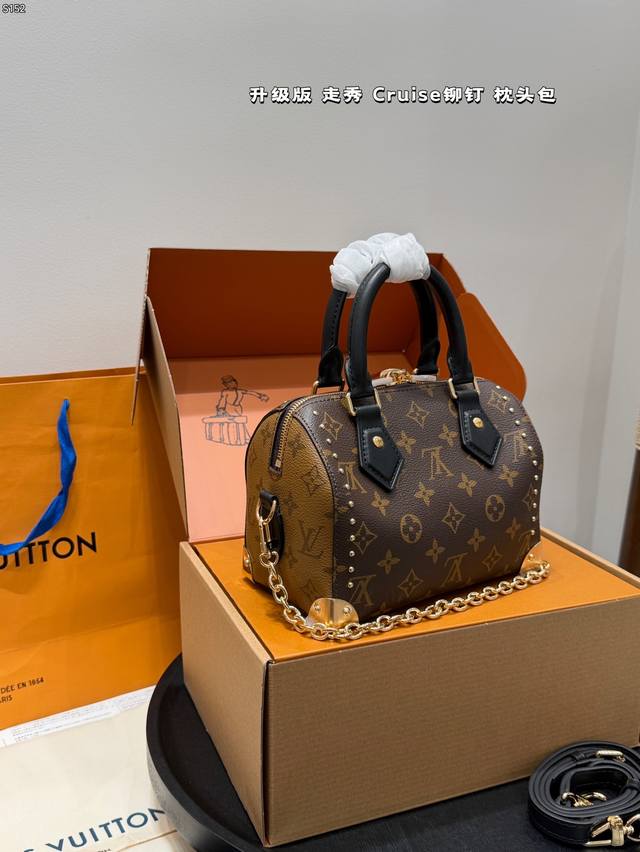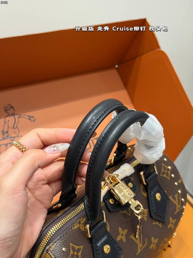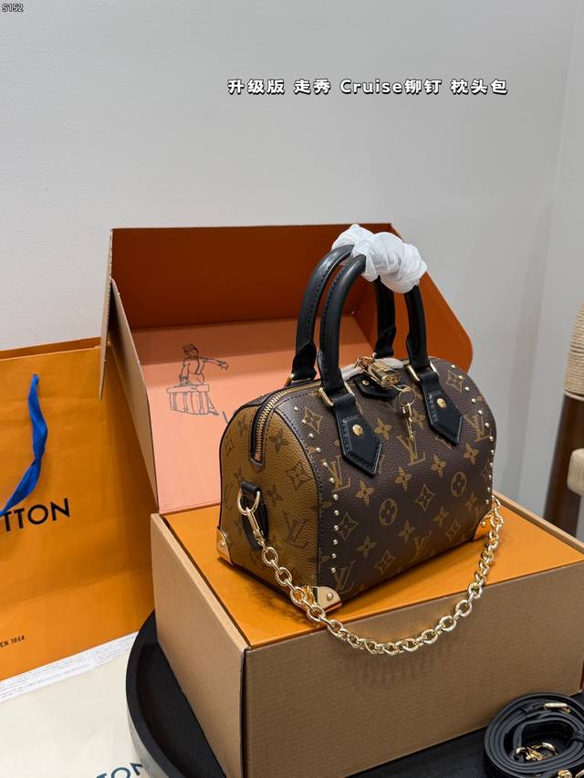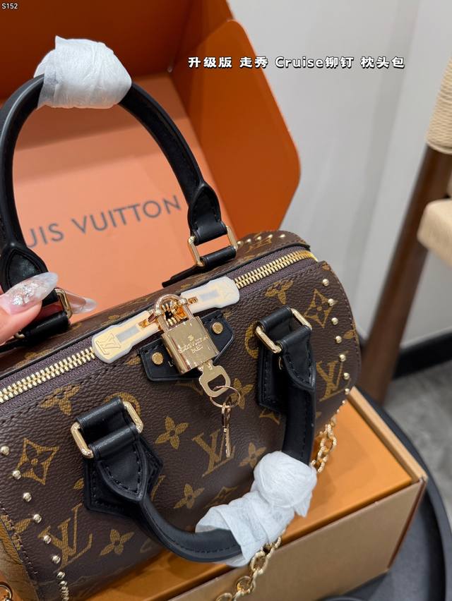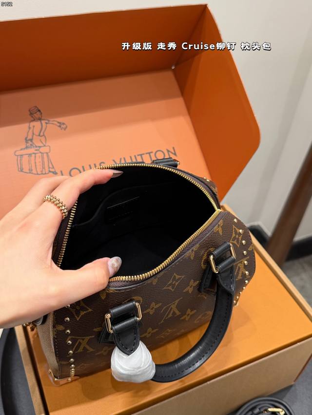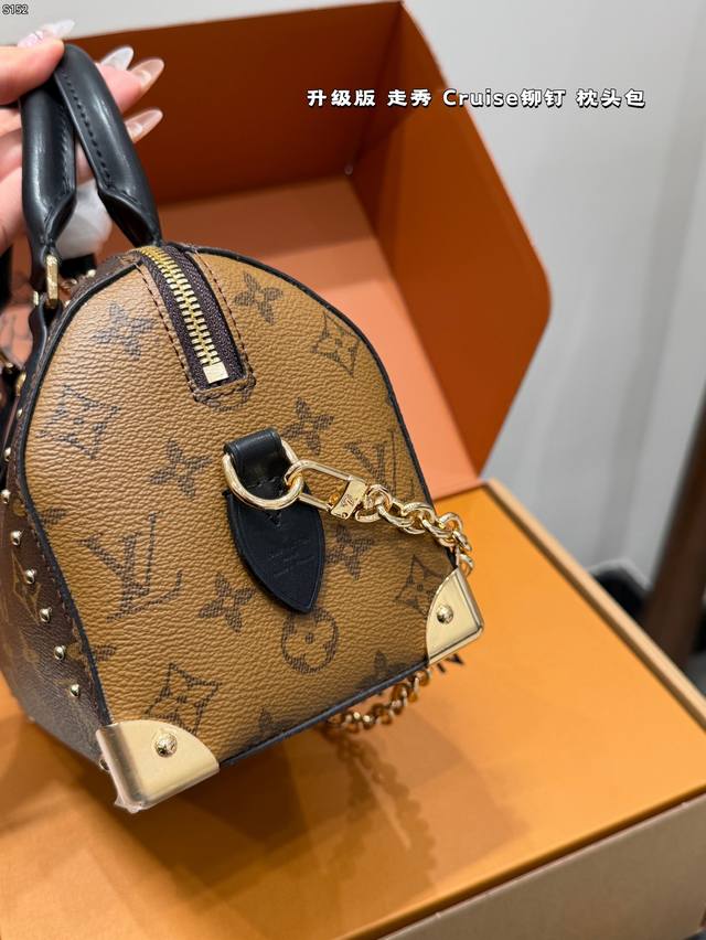 runway style studded pillow bag Speedy20 Trunk pillow bag with iron legs