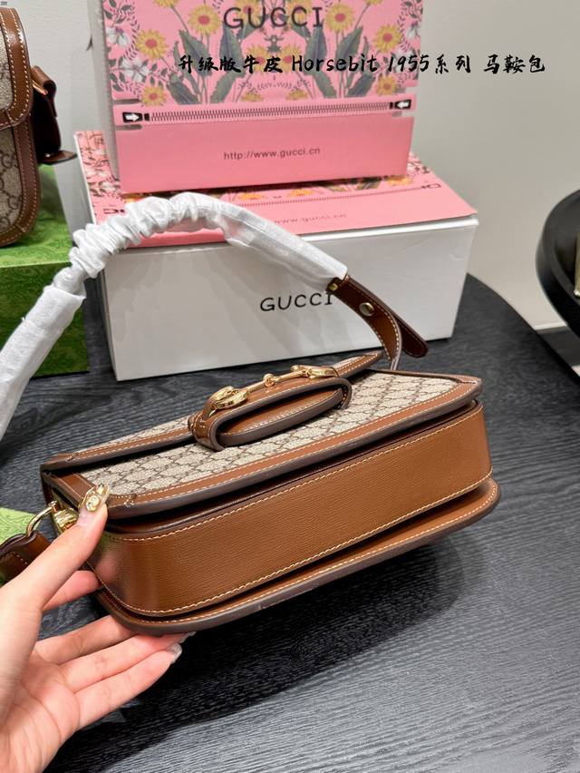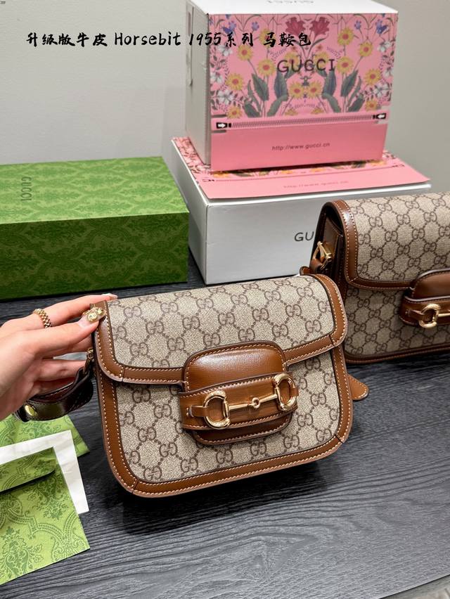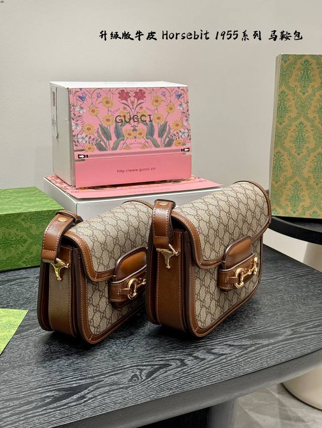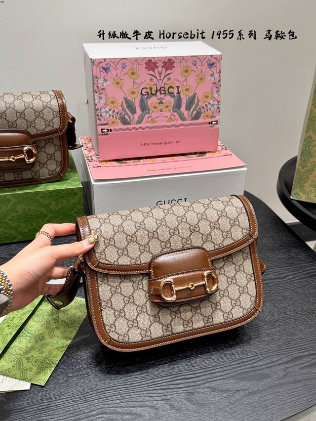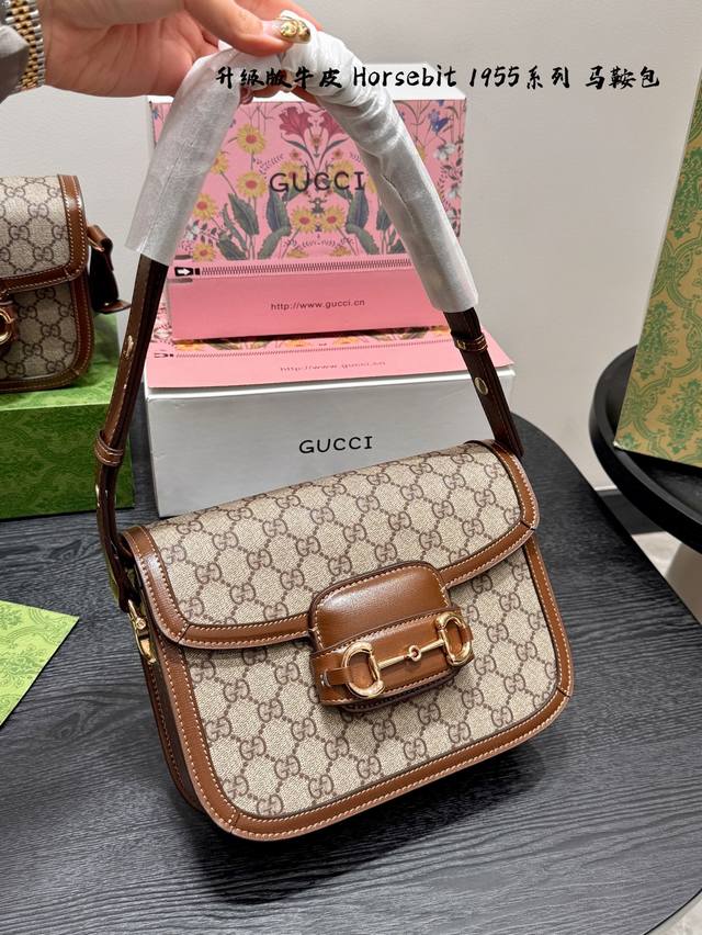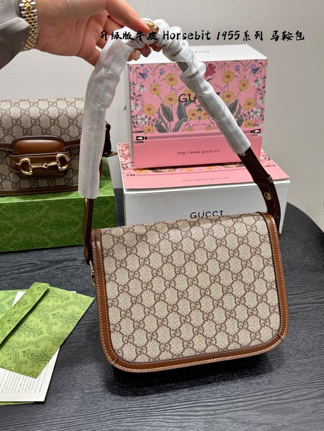 Full Gift Set, Upgraded Leather, Size: 25*19cm (Large), 20*15cm (Small), Gucci Horsebit 1955 Saddle Bag. Features a classic horsebit metal logo, exuding a retro vibe. Excellent quality, adjustable shoulder strap. Elegant, classic, and incredibly versatile!