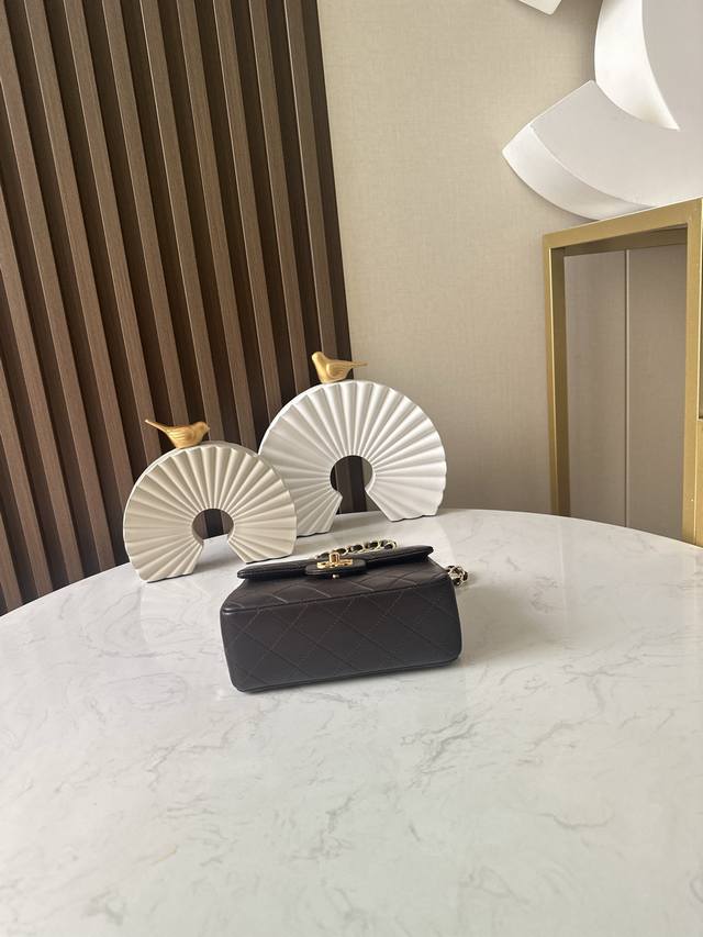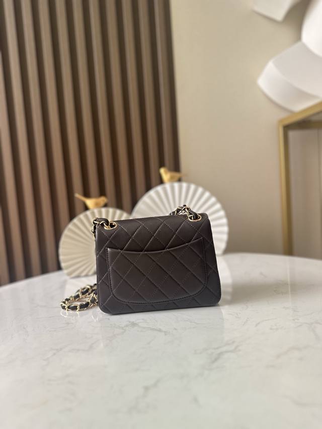 Full packaging, newly shipped. A cute and exquisite vintage Chanel square chubby bag. While it looks small, it perfectly meets everyday needs. This vintage square chubby bag is versatile and goes with everything, never getting old. A worthwhile investment. Item number: 3349, coffee-colored lambskin. Size: 17.5cm.