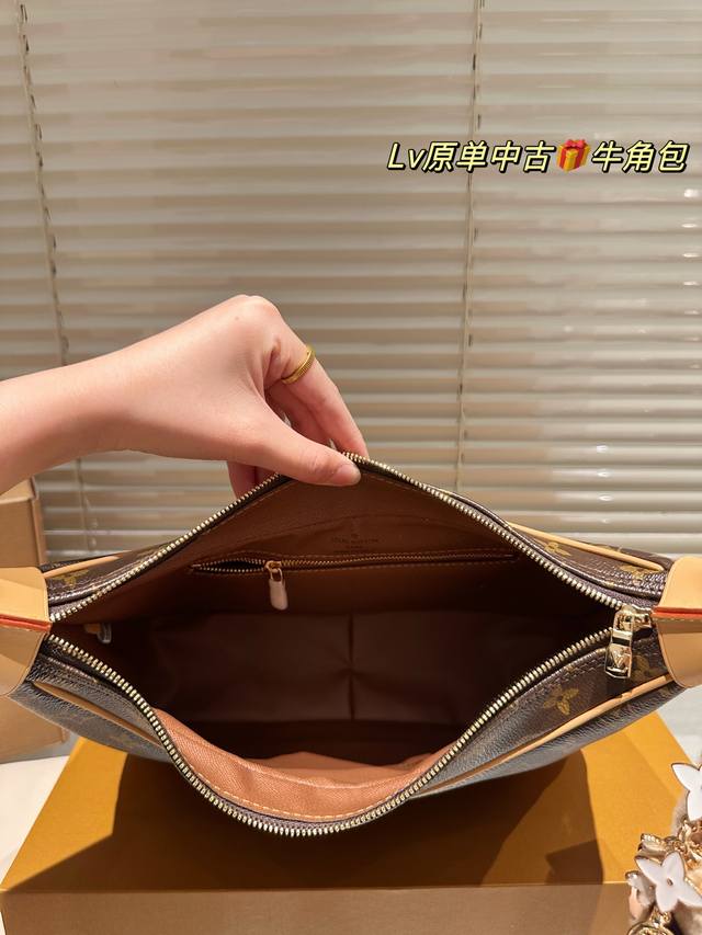 Classic Monogram canvas with leather trim, retro elegance and practical! The curved shape is inspired by a bull's horn, with smooth lines and moderate capacity, suitable for commuting and dates. The shoulder strap is adjustable, supporting multiple carrying methods such as shoulder, crossbody, and underarm, versatile and flattering for all body types. The interior space is well-organized, easily accommodating tablets and cosmetics, suitable for both men and women, a practical gem among LV's classic styles!