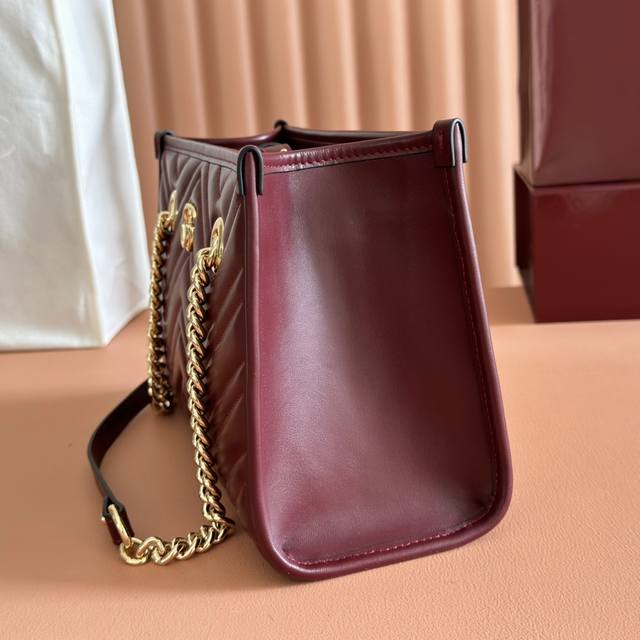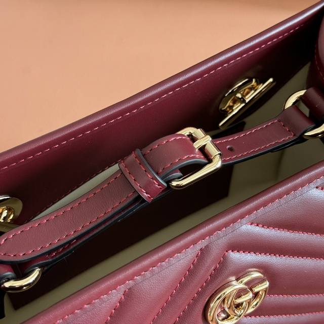 Gg Marmont Small Tote Bag with Boutique Packaging Style No. 779727 Aadk4 1000 The Gg Marmont series continues to shine in the Spring/Summer 2017 collection. This small tote bag is crafted from black quilted leather, featuring the timeless double G logo and gold-tone hardware, a charming interpretation of the brand's classic style. Black quilted V-shaped leather Antique gold-tone hardware Suede microfiber lining Double G logo Open interior pocket Adjustable leather handle Shoulder strap 26cm high Weight: approx. 0.65kg Small size: 26.5cm x 18.5cm x 12.5cm Made in Italy Model height 176cm Maximum capacity: iPhone Pro Max Plus, AirPods, small wallet and lipstick
