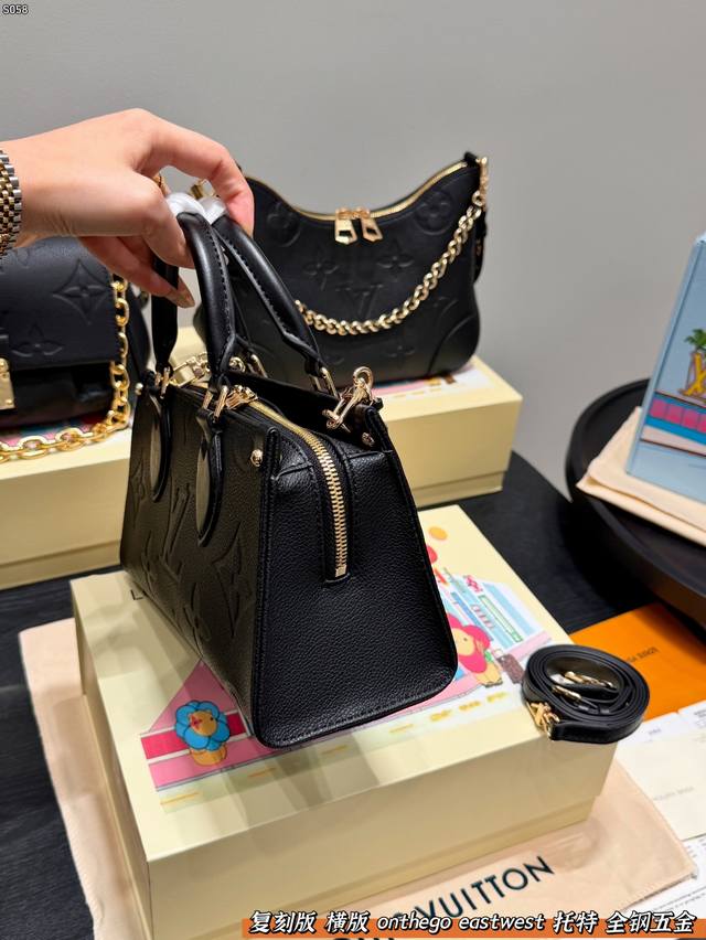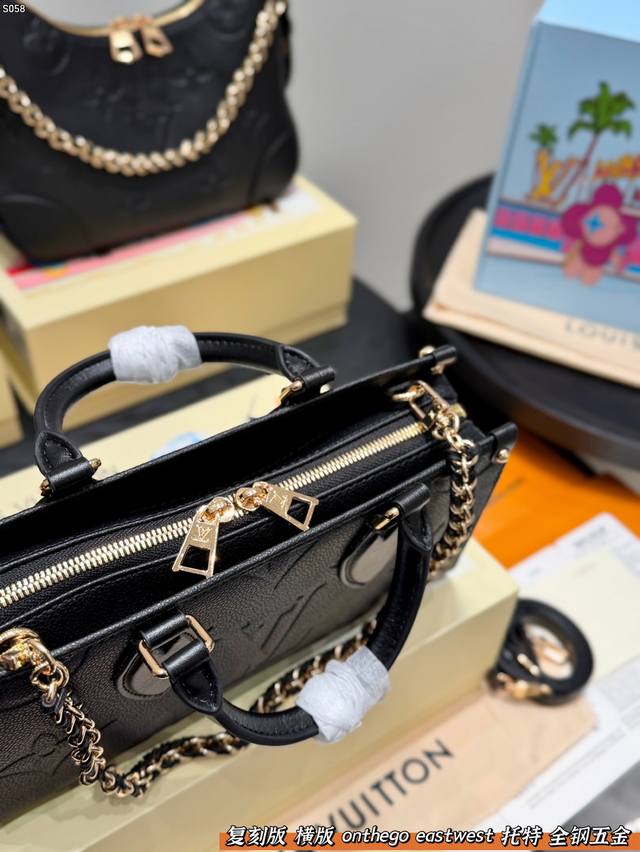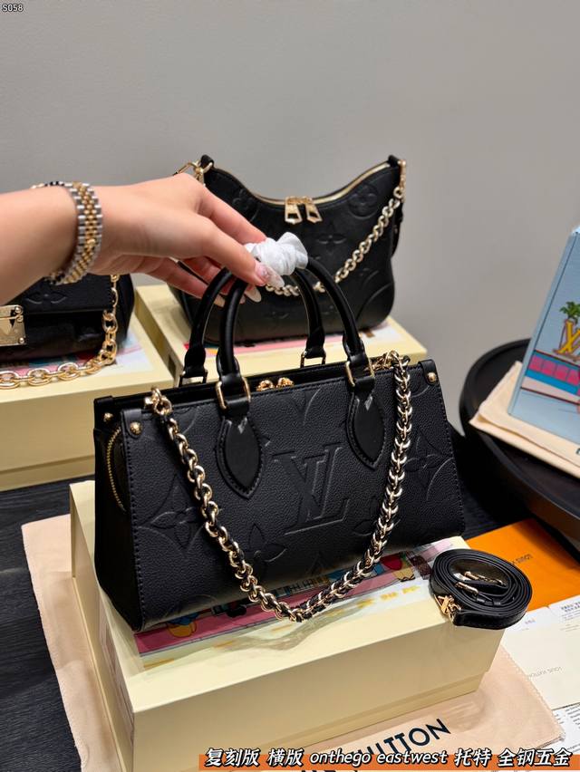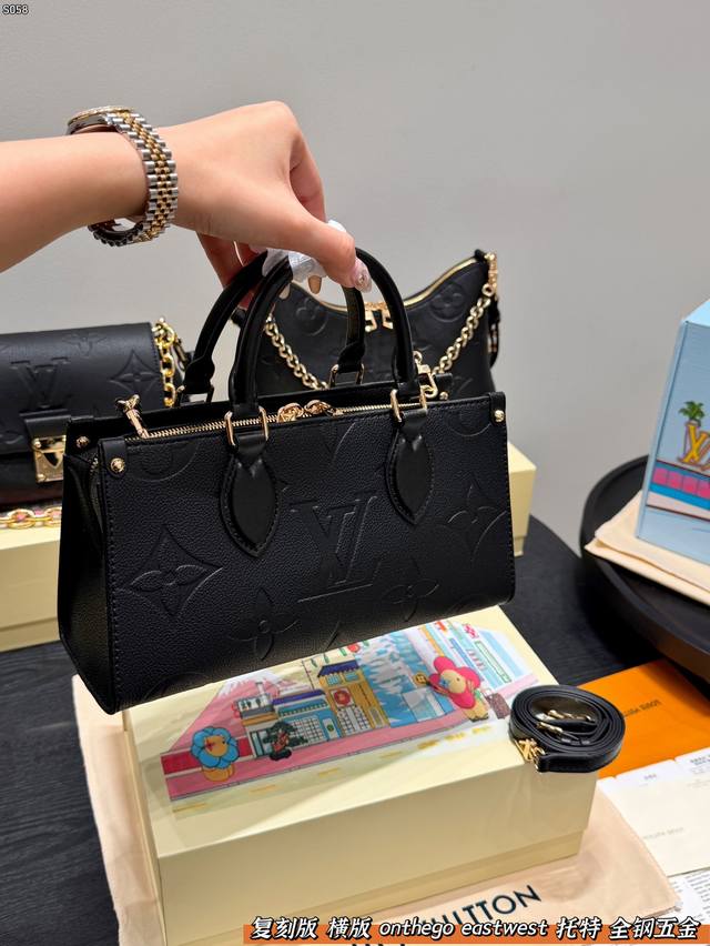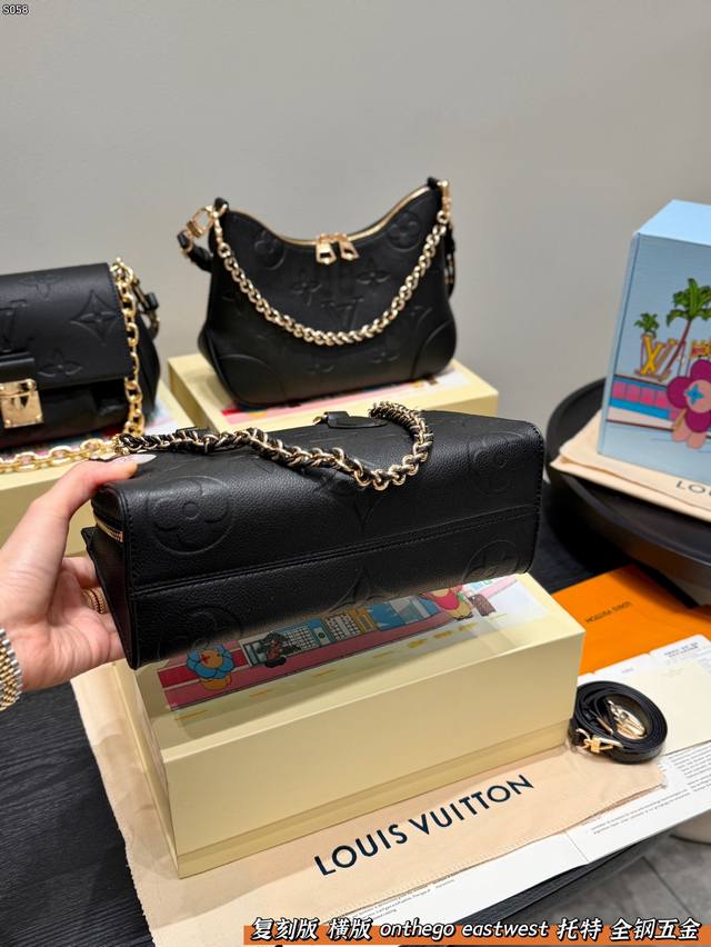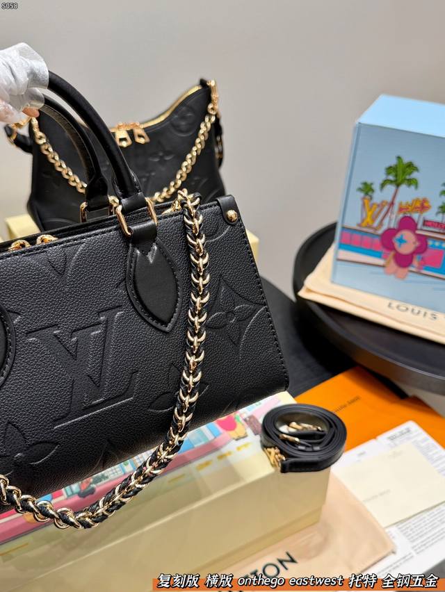 LV Onthego Eastwest Horizontal Tote Bag Jungle Black Embossed