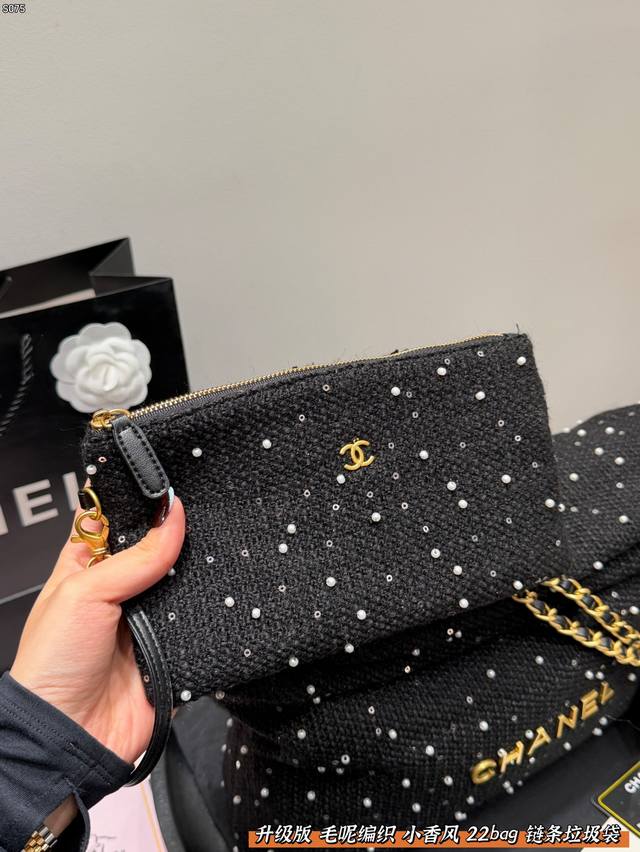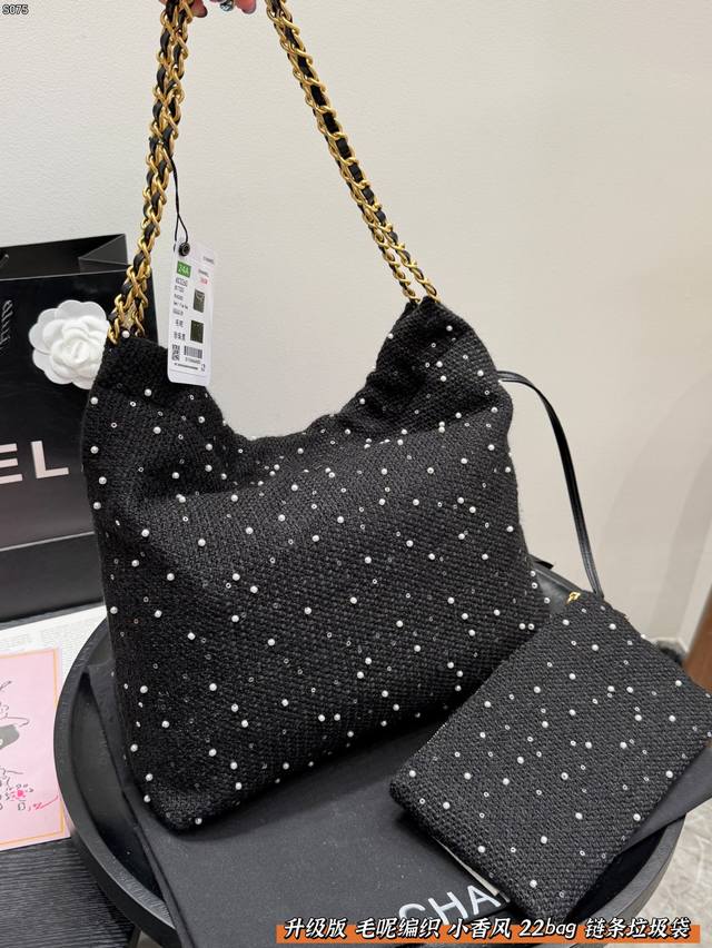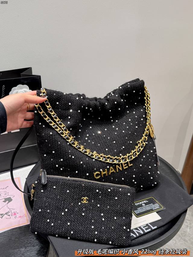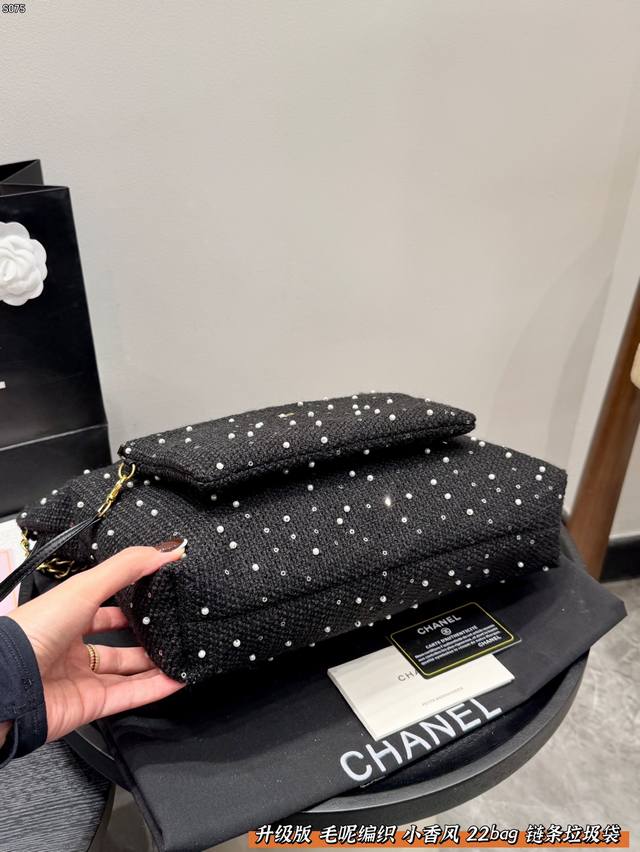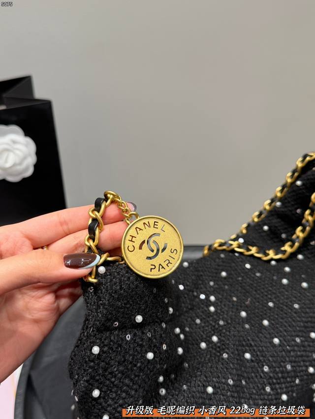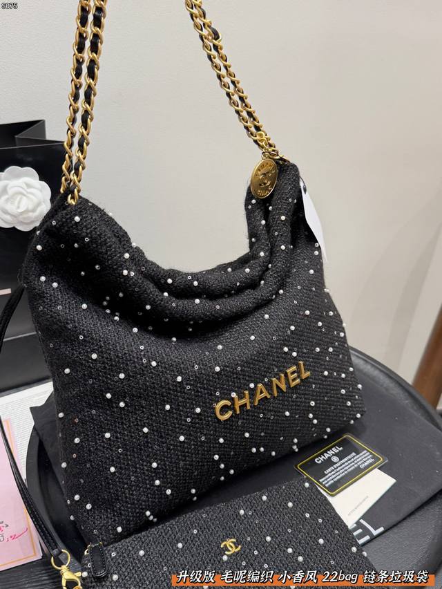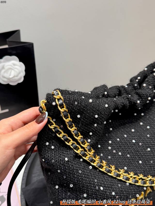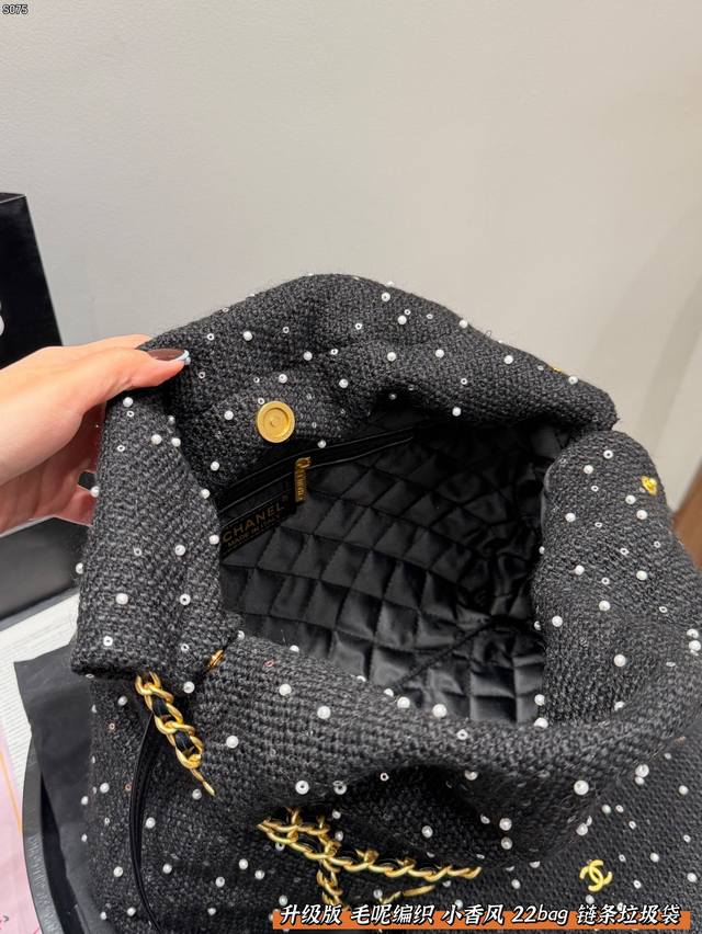 Chanel 22Bag Wool Woven Trash Bag with Sequins and Pearls