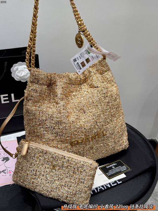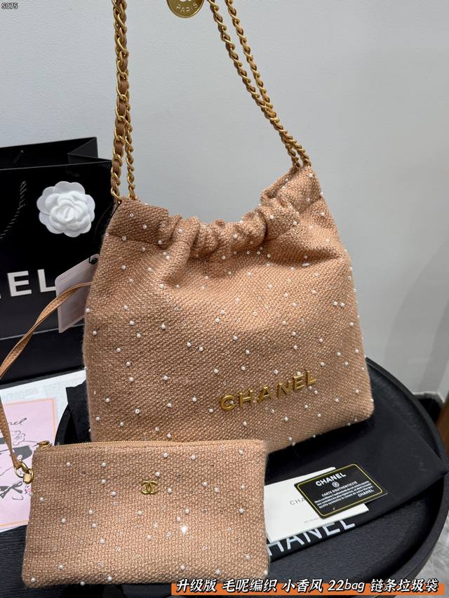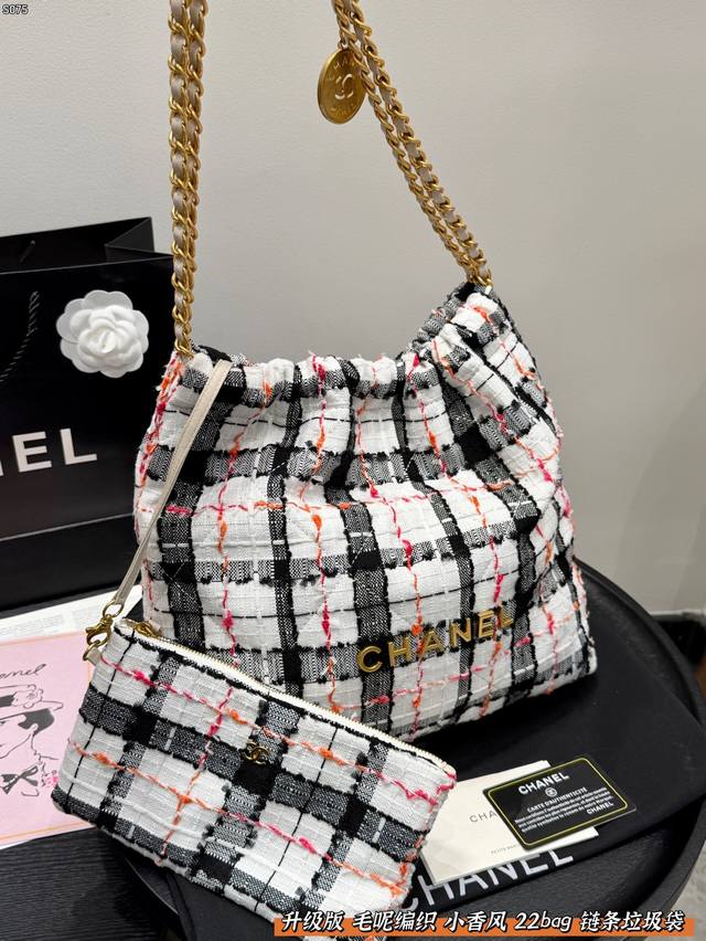 Gift Box Packaging Size 35*30 Chanel 22Bag Wool Woven Trash Bag with Sequins and