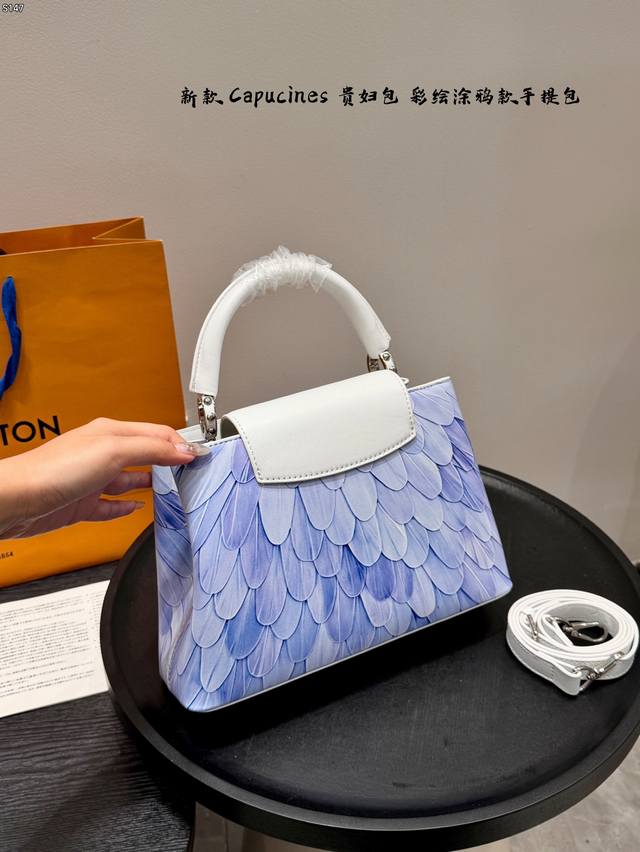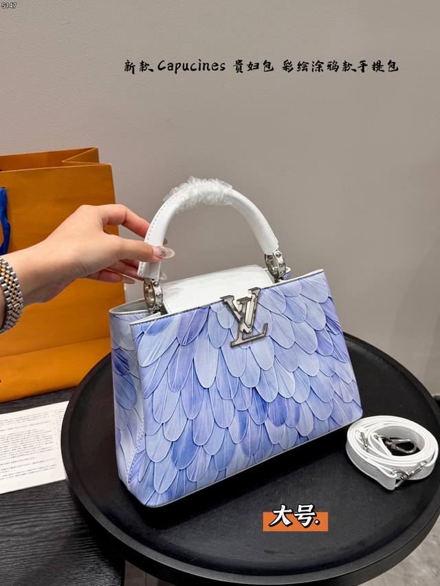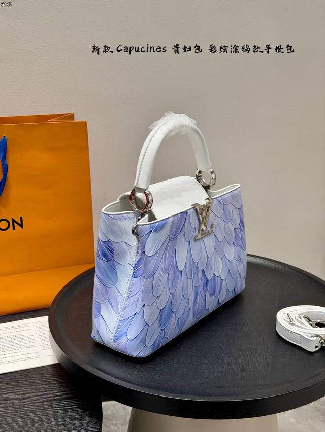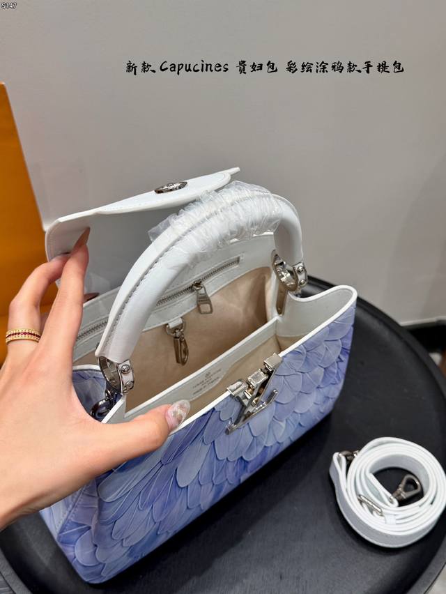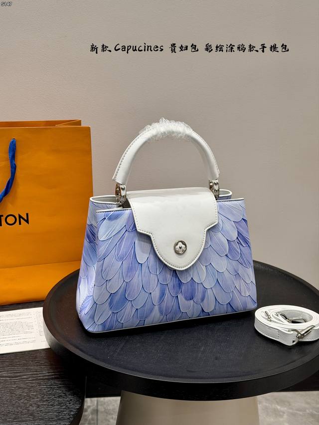 LV Capucines Luxury Bag with Painted Graffiti Feather Design Taurillon Capucines Handbag/Tote/Crossbody Bag