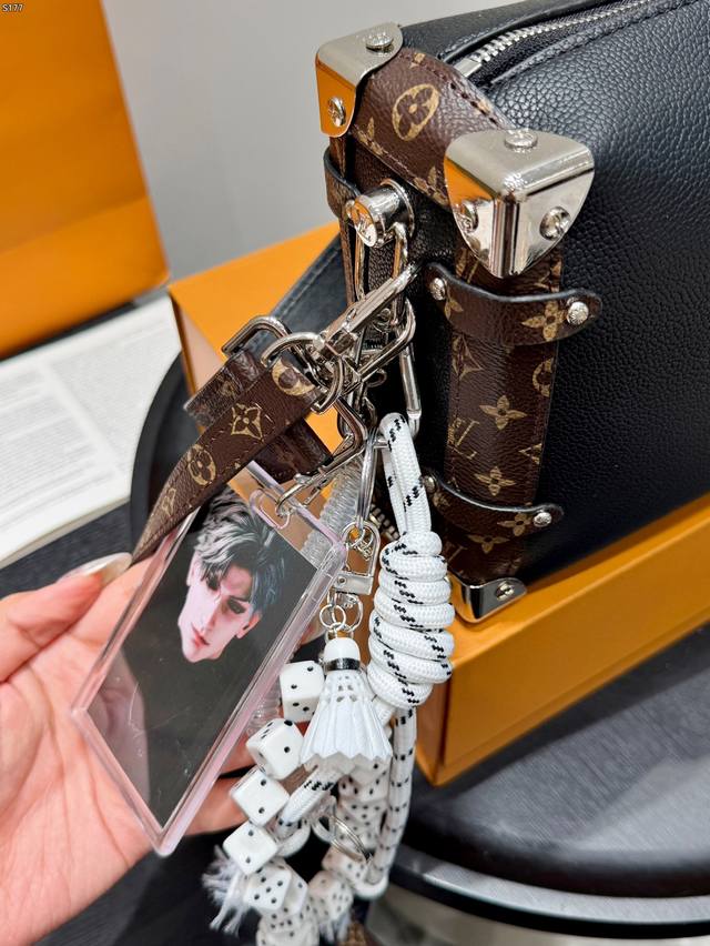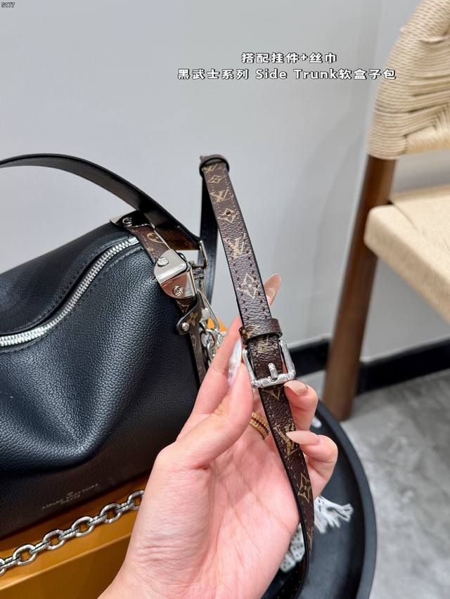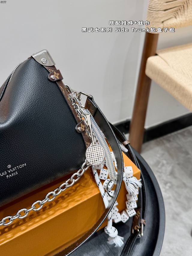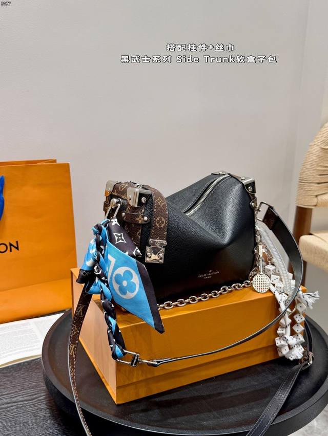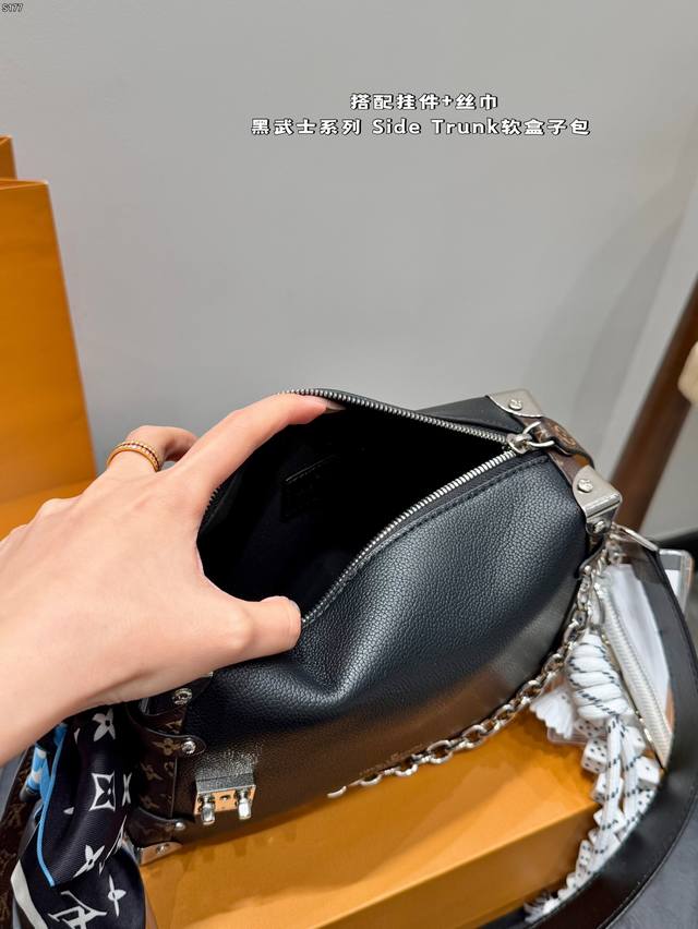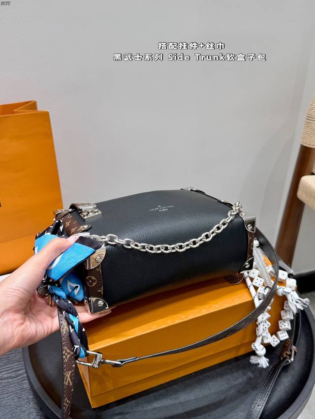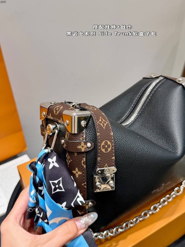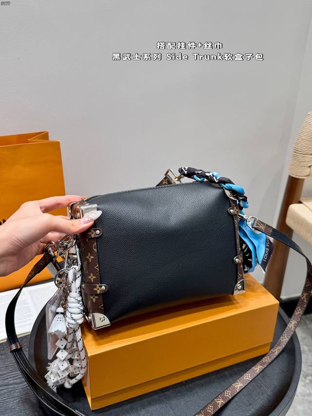 Gift Box Packaging with Pendant! New Silk Scarf! Gu Ailing's Style Showcase Mini Box Bag! LV Side Trunk Black Warrior New Box Bag! It's a soft box bag with many exquisite little details inside. Large capacity, practical, and great for styling. The long and short shoulder straps can be easily switched. Whether you're a wealthy woman or a cute girl, you can create a super stylish look. Size: 23 x 16 cm.
