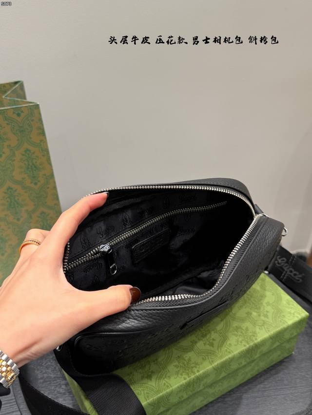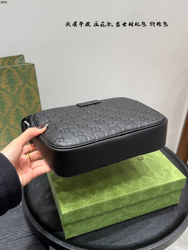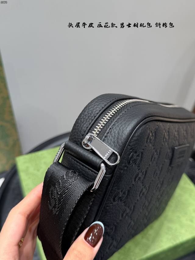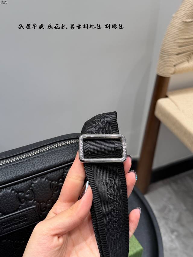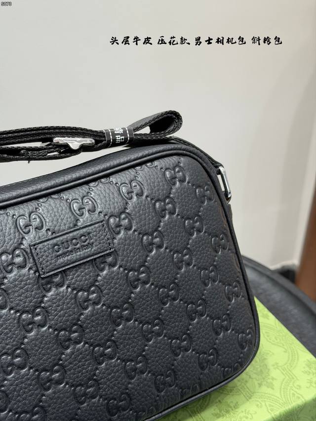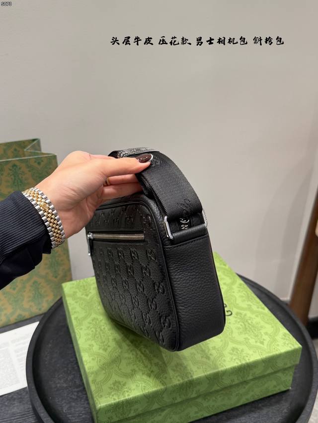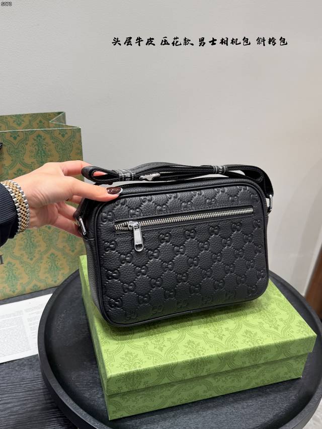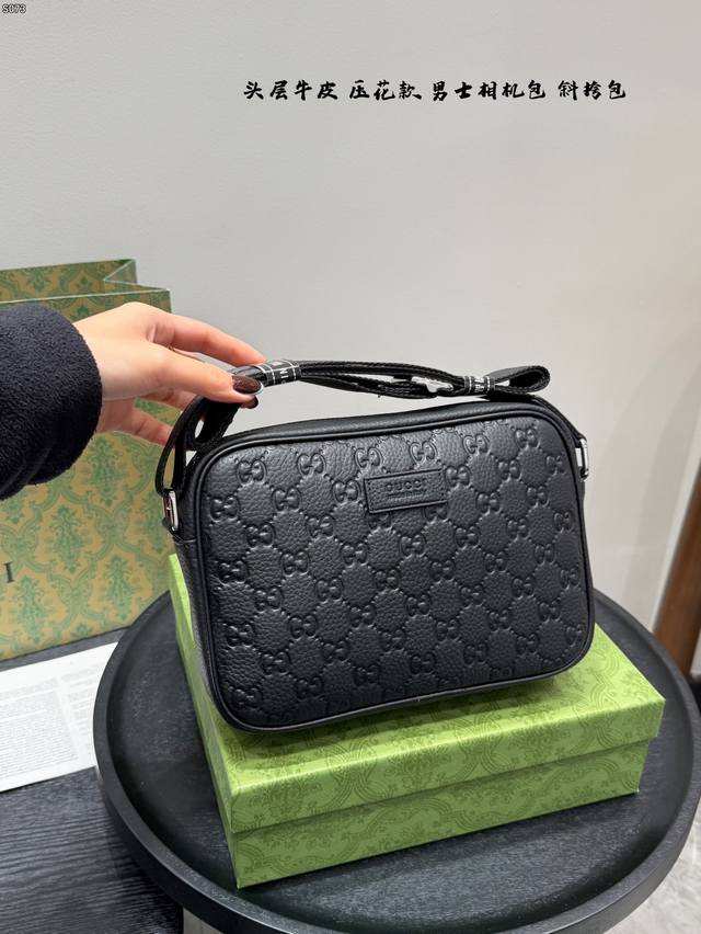 Gift Box, Top Layer Cowhide Embossed, Size: 23*14cm, Gucci Latest Men's Camera Bag, Black Knight Style, So Cute, Little Messenger, Really High Cost Performance, Perfect Gift for Girls to Get for Their Boyfriends!