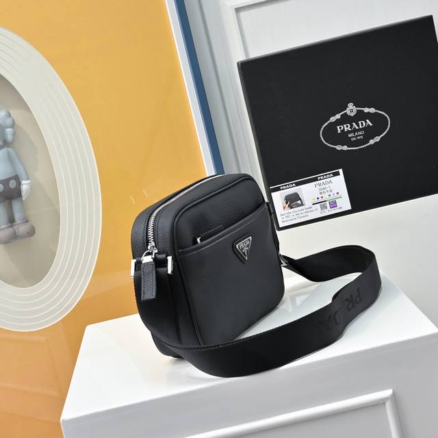 Gift Box, Top Layer Cowhide Embossed, Size: 23*14cm, Prada's Latest Men's Camera Bag, Black Knight Style, So Cute, Little Messenger Design, Really High Cost Performance, Perfect Gift for Girls to Get for Their Boyfriends!