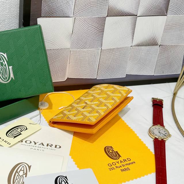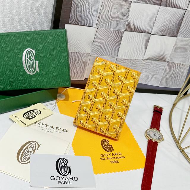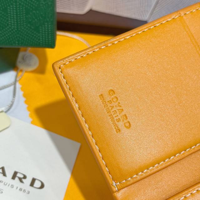 Goya Saint-Pierre Card Holder is fully functional, featuring a large banknote pocket that can hold cards, ID cards, and bills simultaneously. Its compact design fits perfectly in a jacket or trouser pocket. Style Number: 98026 Color: Yellow Dimensions: 11cm x 1.5cm x 7.5cm