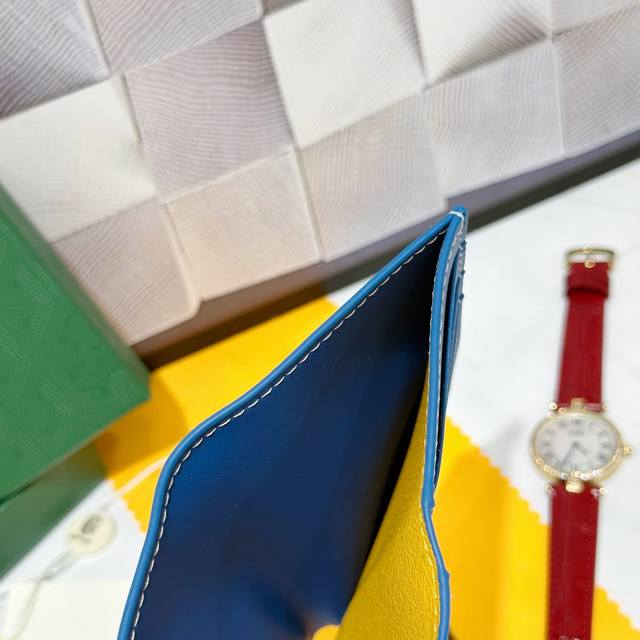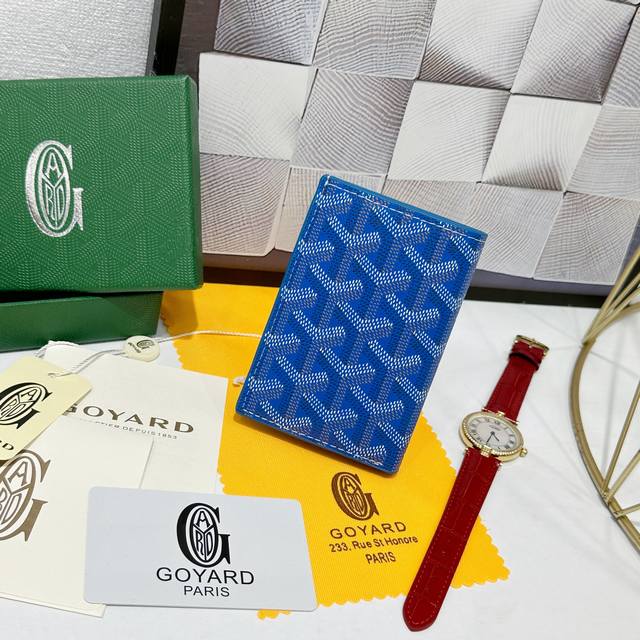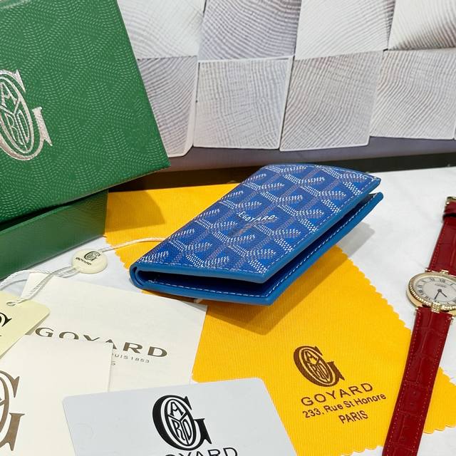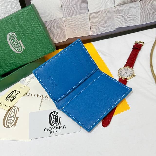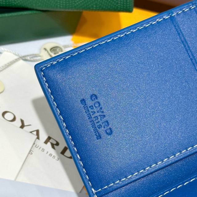 Goya Saint-Pierre Card Holder is fully functional, featuring a large banknote pocket that can hold cards, ID cards, and bills simultaneously. Its compact design fits perfectly in a jacket or trouser pocket. Style Number: 98026 Color: Blue Dimensions: 11cm x 1.5cm x 7.5cm