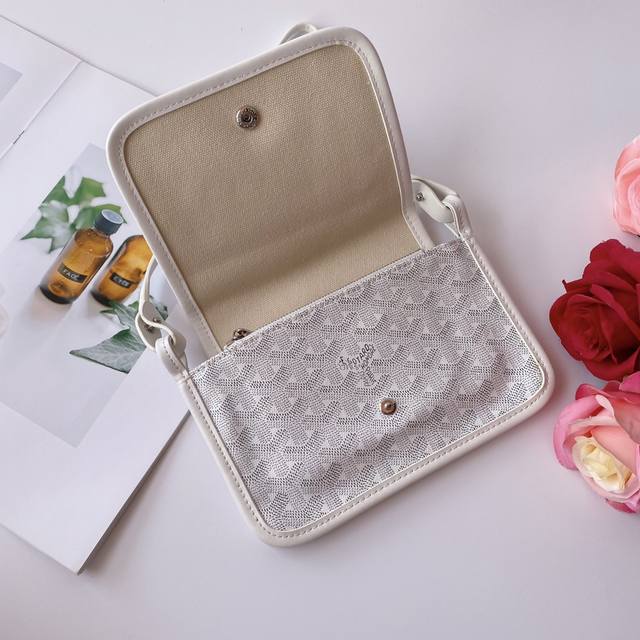 Goyar small crossbody bag, exuding French elegance. Made with custom-made Y-patterned material and lightweight, durable leather, this bag reflects the brand's heritage as a French family-owned trunk maker founded in 1853. It upholds its original traditions, uncompromising craftsmanship, and pioneering creative design. The iconic details also highlight the brand's history. Original leather and hardware. Dimensions: 20.5*2*14 mm.