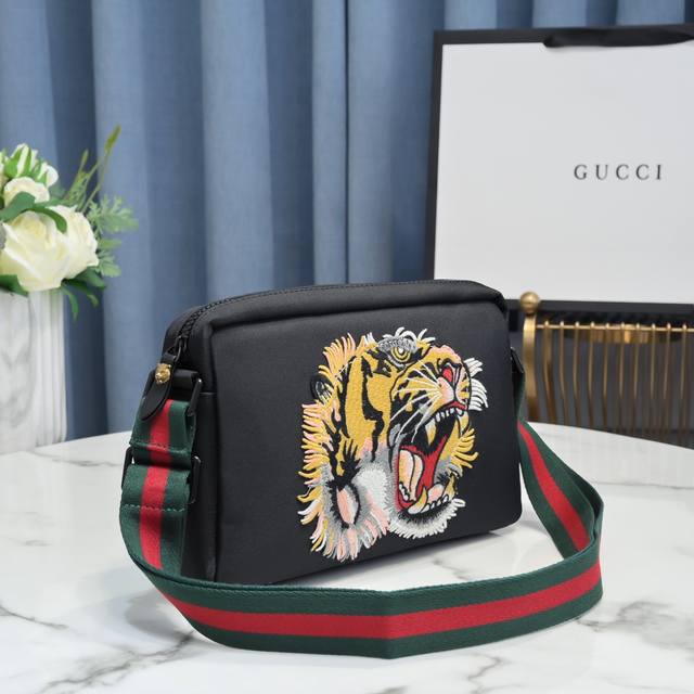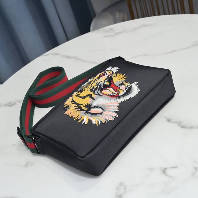 Gucc* New crossbody bag. Imported waterproof Oxford cloth paired with cowhide leather and embroidered with a high-grade tiger head appliqu