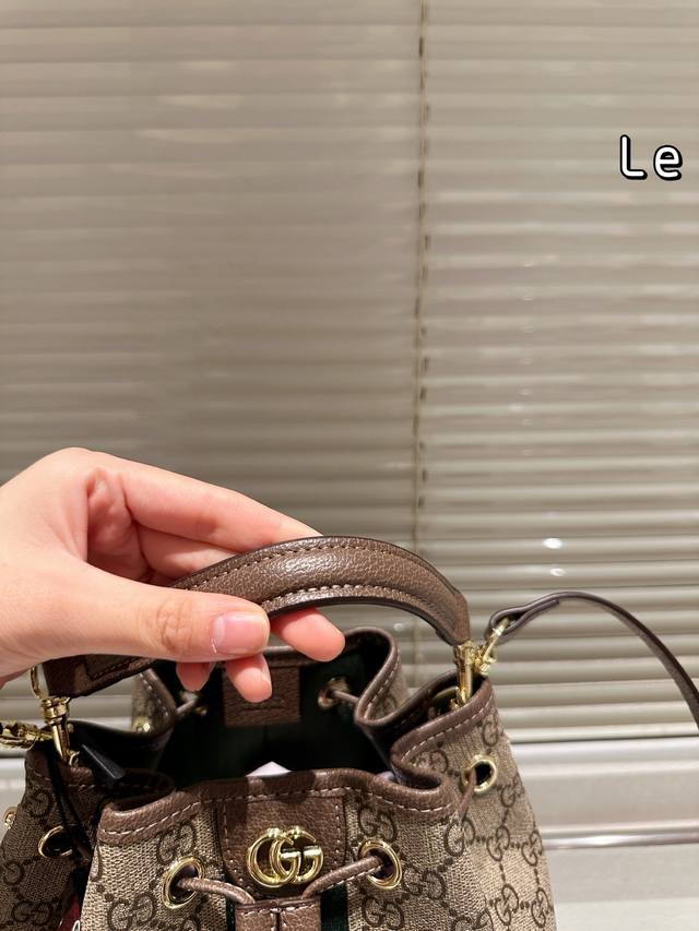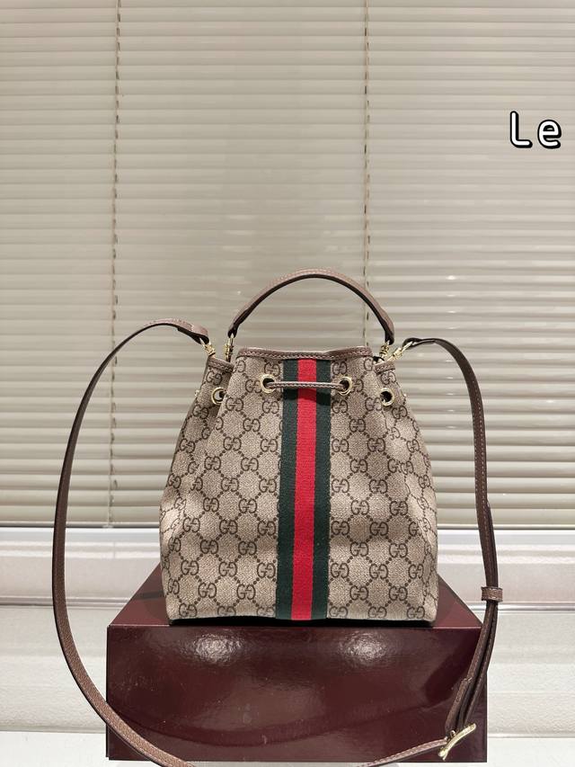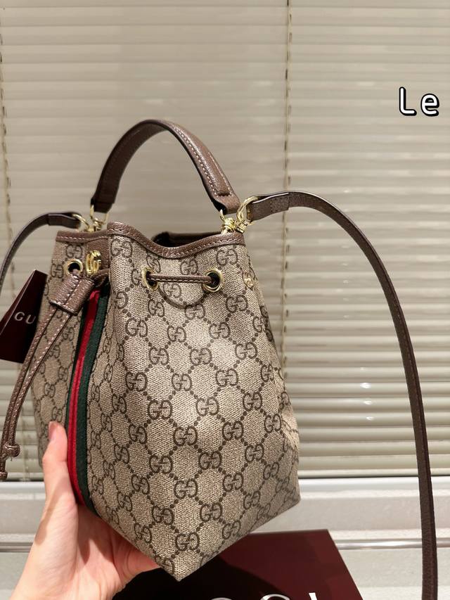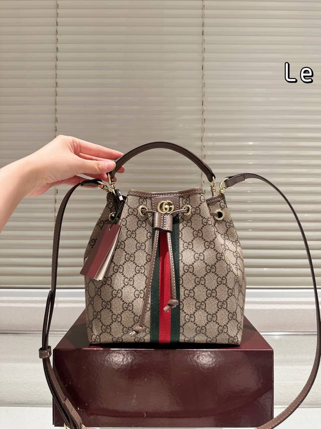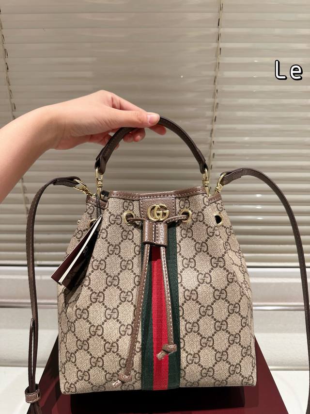 Gucci bucket bag is now available! Full gift box packaging, looks great hand-carry or crossbody. Original leather, classic and high-end GG logo. Size 20.22.