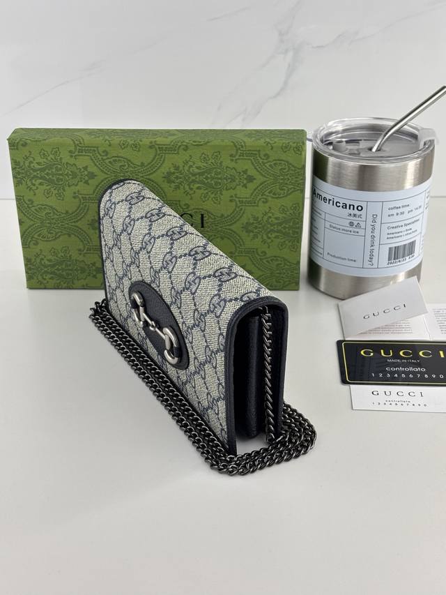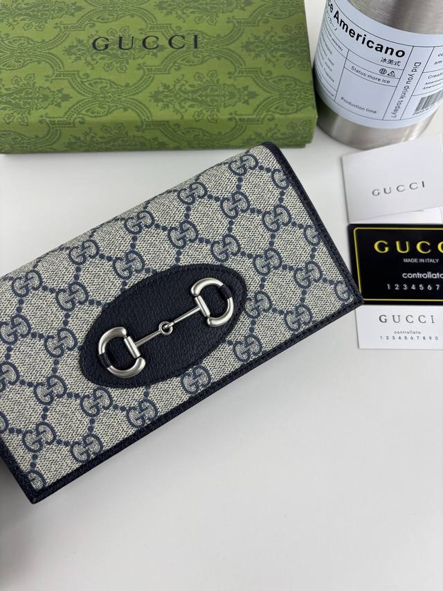Gucci introduces its new 1955 Horsebit cardholder, crafted from Gg Supreme canvas and brown leather. This design features the signature double-ring and elongated shape, a detail inspired by the brand's equestrian heritage and one of Gucci's most iconic symbols. Style Number: 621892 Dimensions: 19cm x 10cm x 3cm Color: Blue