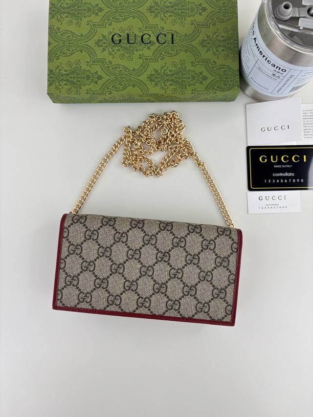 Gucci introduces its new 1955 Horsebit cardholder, crafted from Gg Supreme premium canvas and brown leather. This design features the signature double-ring and elongated shape, a detail inspired by the brand 's equestrian heritage and one of Gucci's most iconic symbols. Style number: 621892 Dimensions: 19cm x 10cm x 3cm Colors: Brown/Red