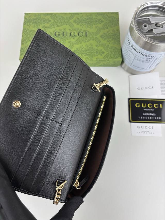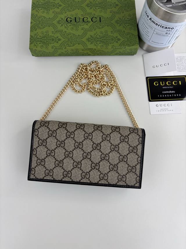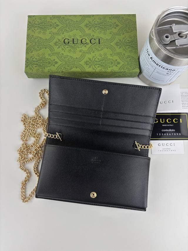 Gucci introduces its new 1955 Horsebit cardholder, crafted from Gg Supreme premium canvas and brown leather. This design features the signature double-ring and elongated shape, a detail inspired by the brand's equestrian heritage and one of Gucci's most iconic symbols. Style Number: 621892 Dimensions: 19cm x 10cm x 3cm Color: Black