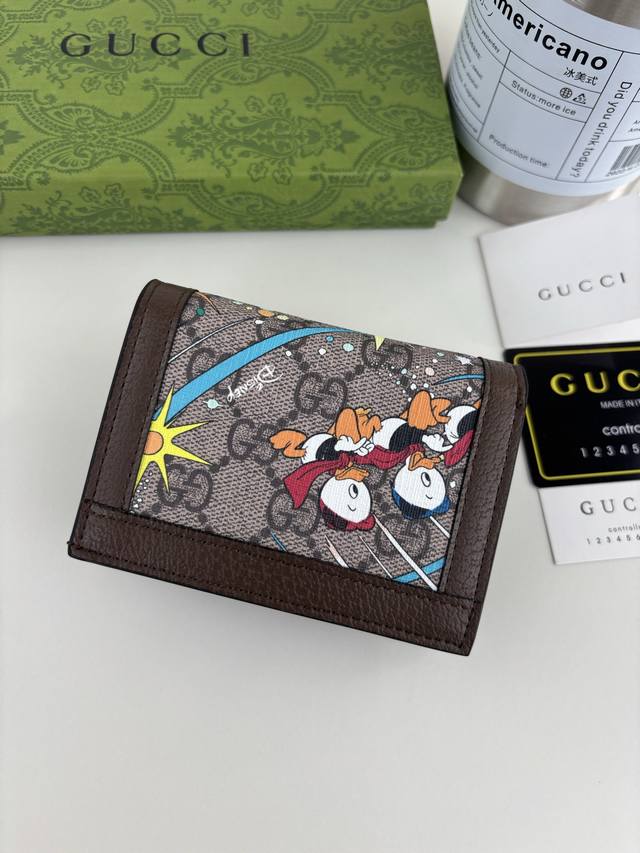 Gucci's new Donald Duck series features a new design with Donald Duck and his three nephews, adding a whimsical charm to classic Gucci bags. The family flying and reaching for the stars is fun, stylish, and practical! Style Number: 648121 Size: 11cm x 8cm x 3cm Color: Brown