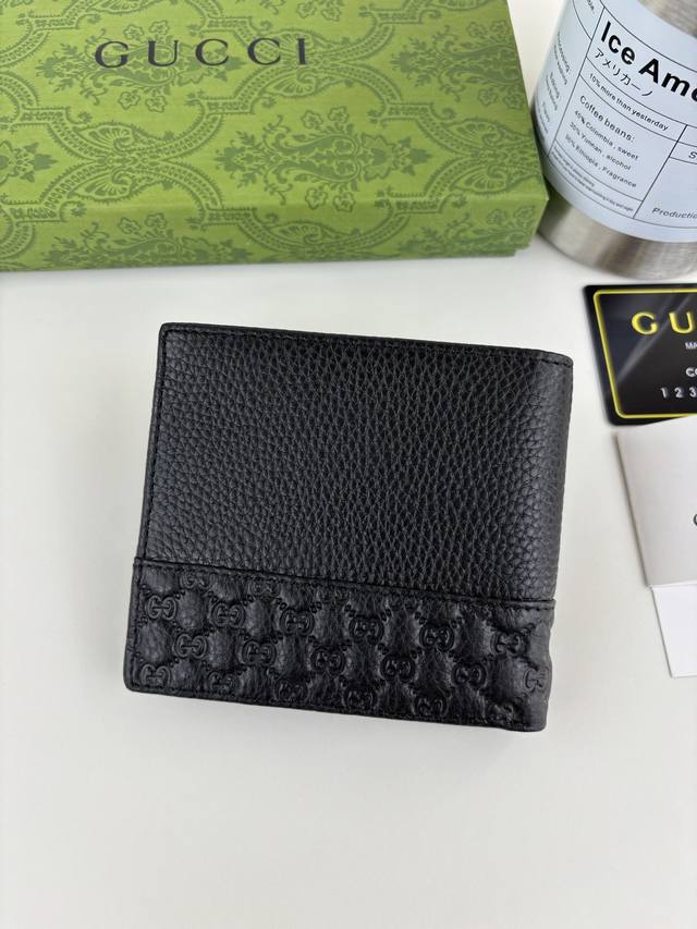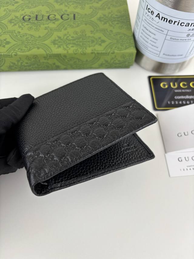Guccl New Gg Emblem Series Extra Soft Lychee Texture Black Embossed Leather Wallet. Style Number: 523669. Dimensions: 11cm x 9cm x 1.5cm. Color: Black.
