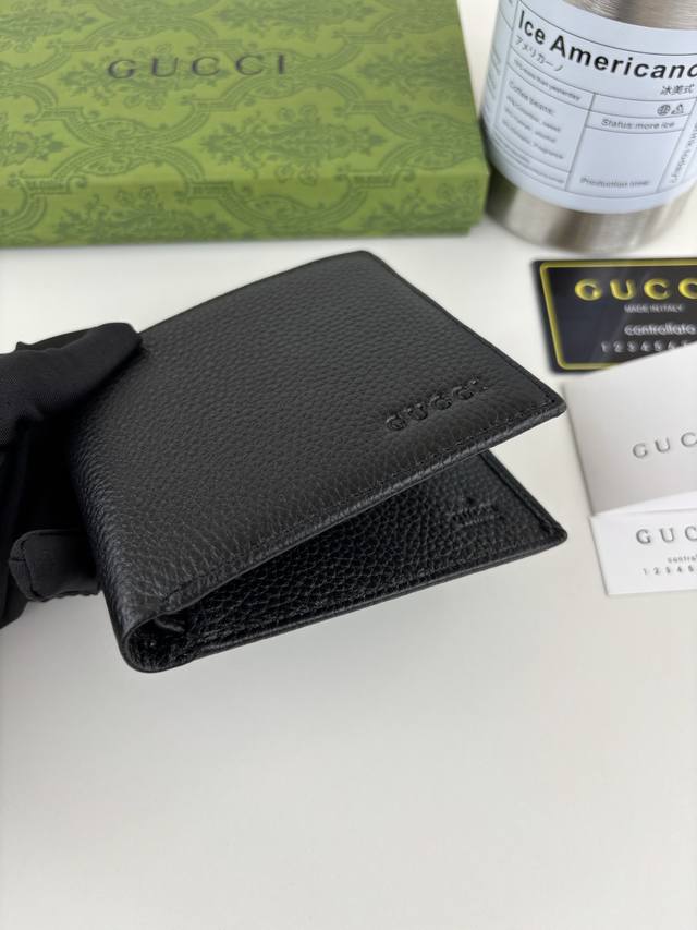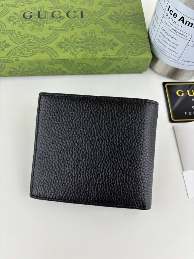 Guccl New Gg Emblem Series Extra Soft Lychee Textured Black Leather Blended Gg Standard Leather Wallet. Style Number: 526367. Dimensions: 11cm x 9cm x 1.5cm. Color: Black.