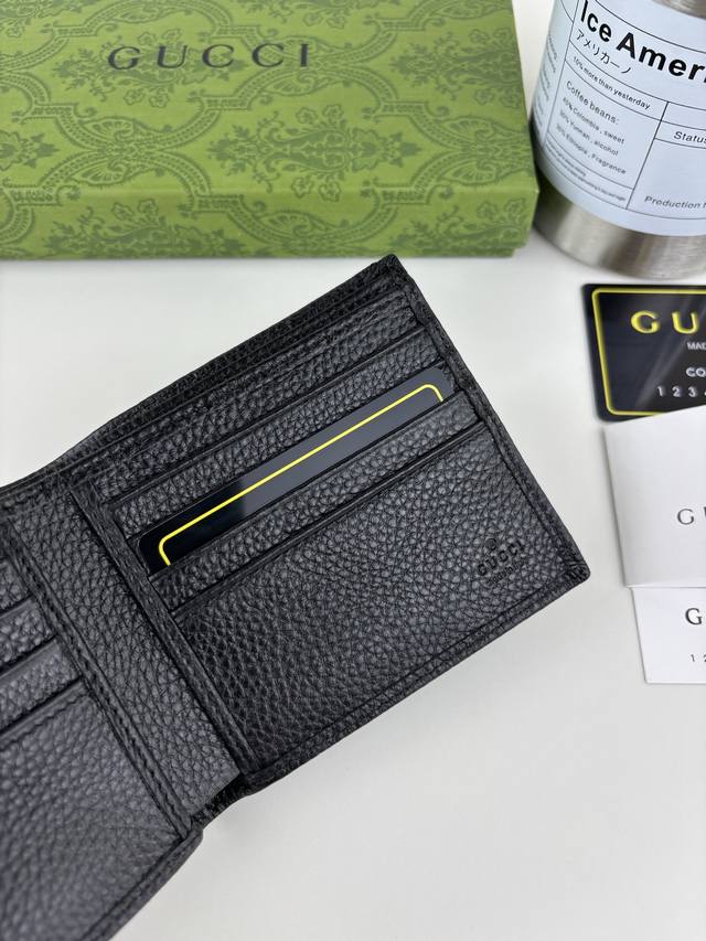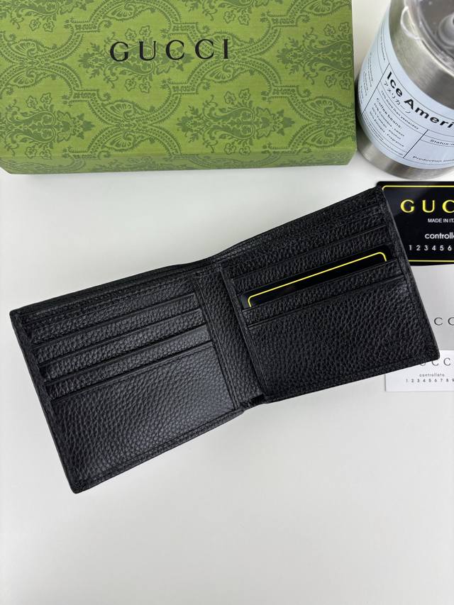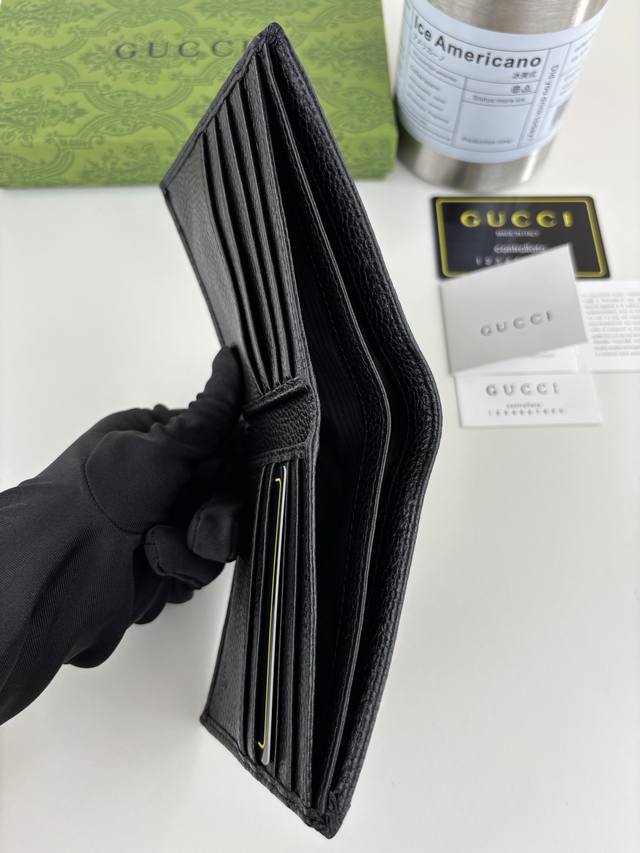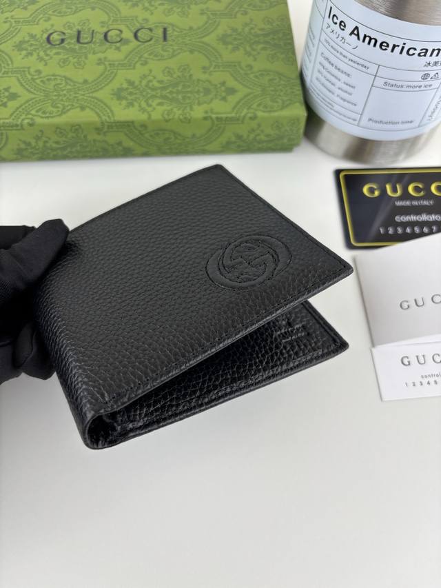 Guccl New Gg Emblem Series Extra Soft Lychee Textured Black Leather Blended Gg Standard Leather Wallet. Style Number: 322114. Dimensions: 11cm x 9cm x 1.5cm. Color: Black.