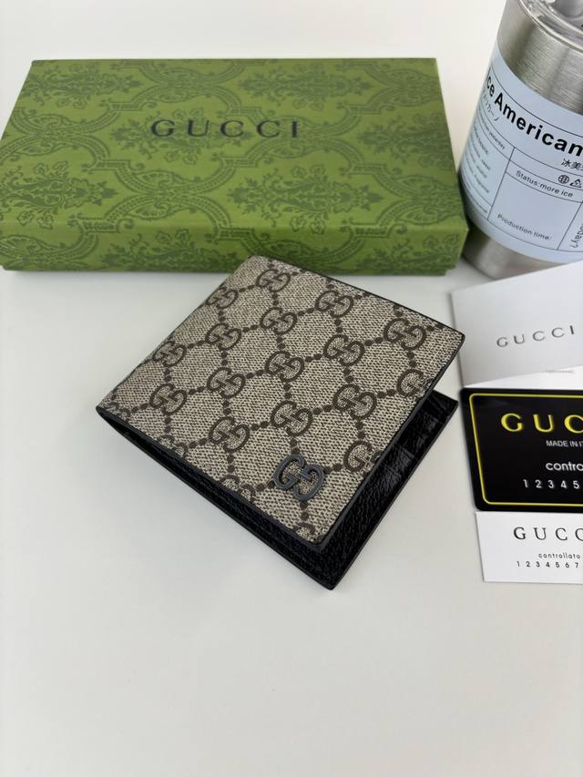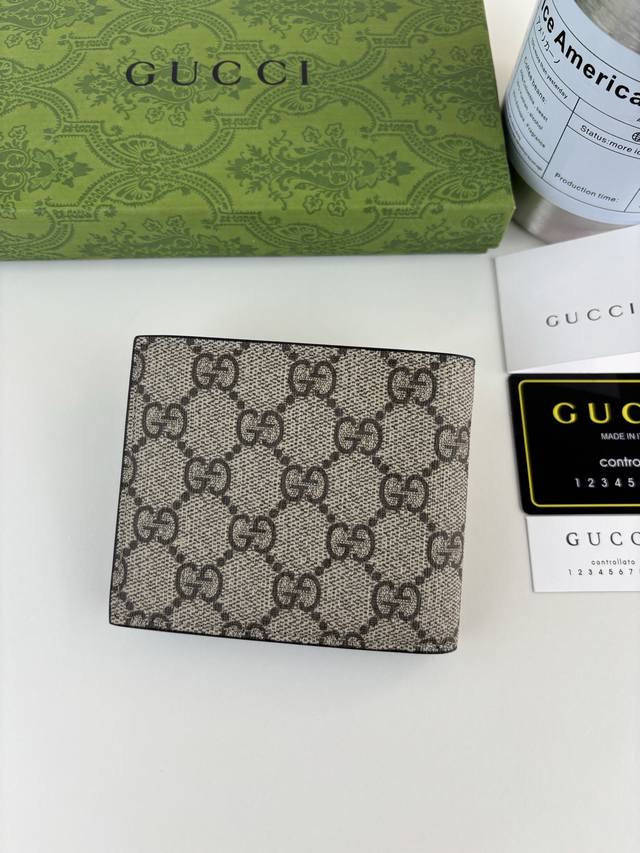 Guccl Wallet, a newly launched slim and compact leather item in a collection that blends a variety of vibrant colors. The contrasting two-tone design highlights the Gg logo adorning the bag. Crafted from brown Gg Supreme canvas with a brown leather lining, this wallet features eight card slots and two bill compartments. Style Number: 768243 Dimensions: 11cm