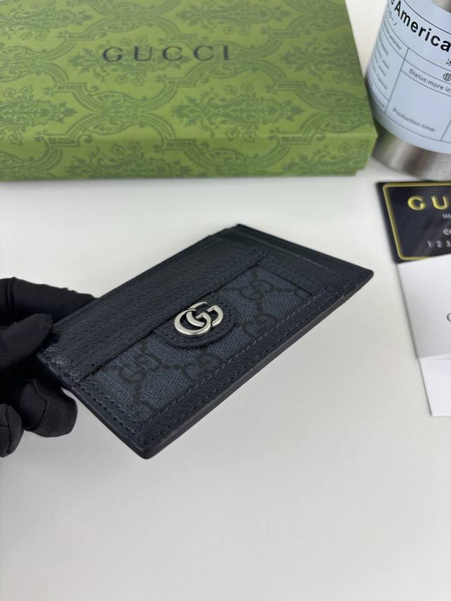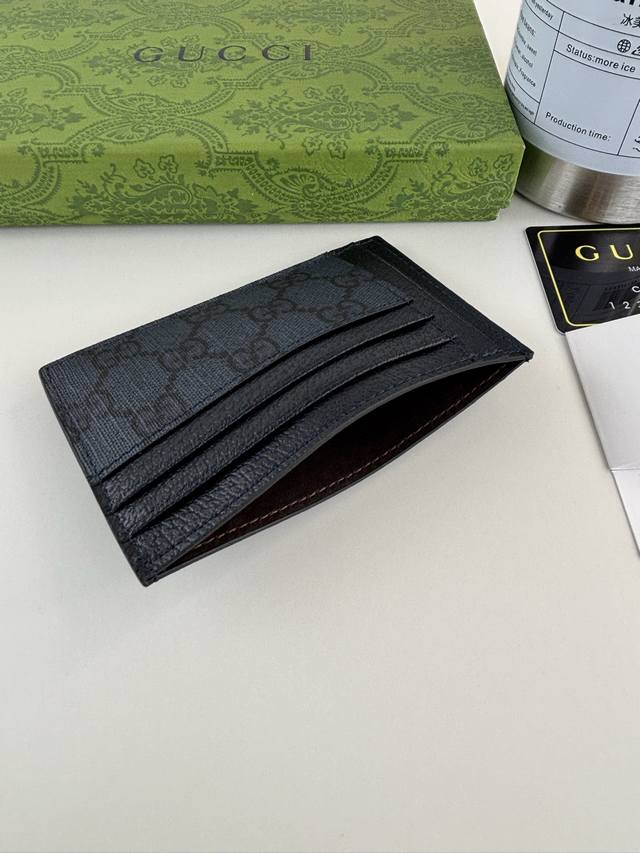 Guccl's latest Phidia series cardholder, an Ophidia series item with an enduring retro feel. Blue Gg Supreme canvas, blue leather trim, palladium-toned hardware with double G logo. Style number: 732018. Dimensions: 11cm x 7cm x 0.5cm. Color: Blue.