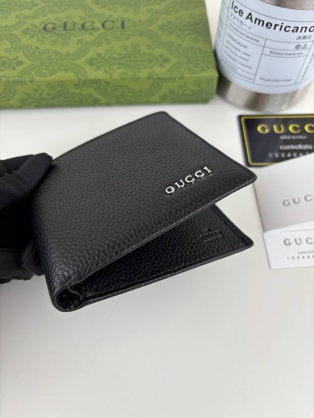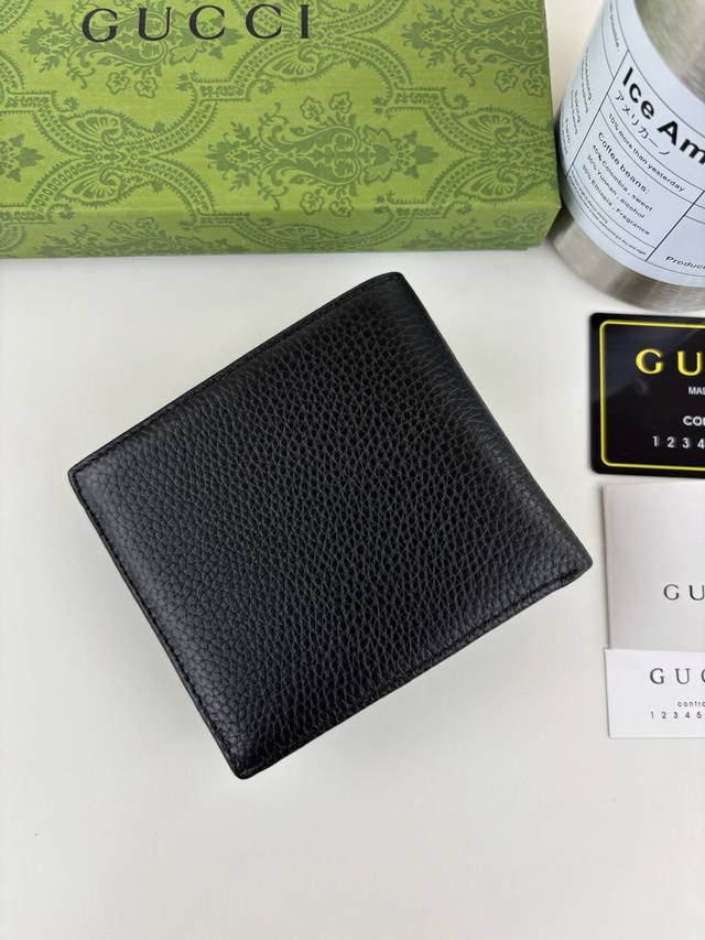Guccl's new Gg Emblem series features ultra-soft lychee-textured black leather with Gg lettering hardware. Stylish and sophisticated. Style Number: 8 19 Size: 11cm x 9cm x 1.5cm Color: Black