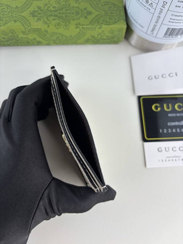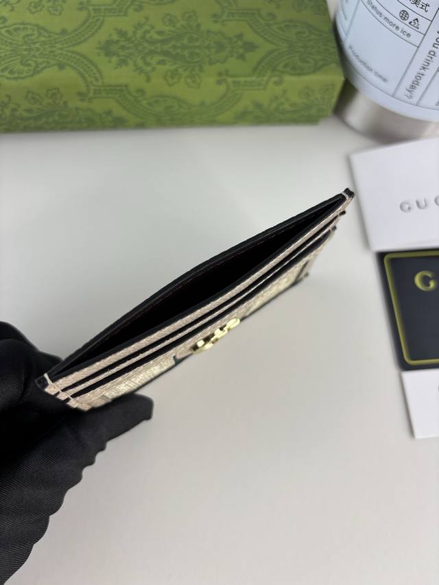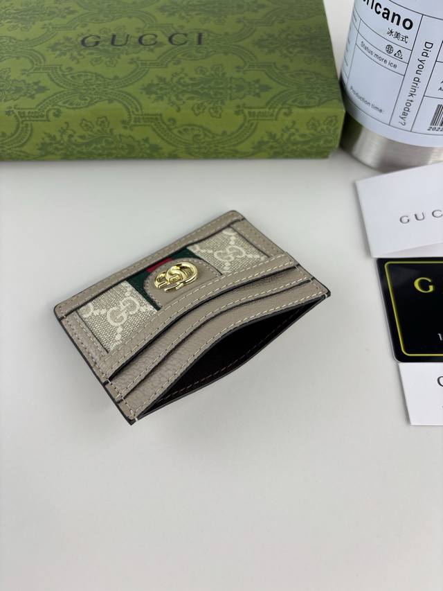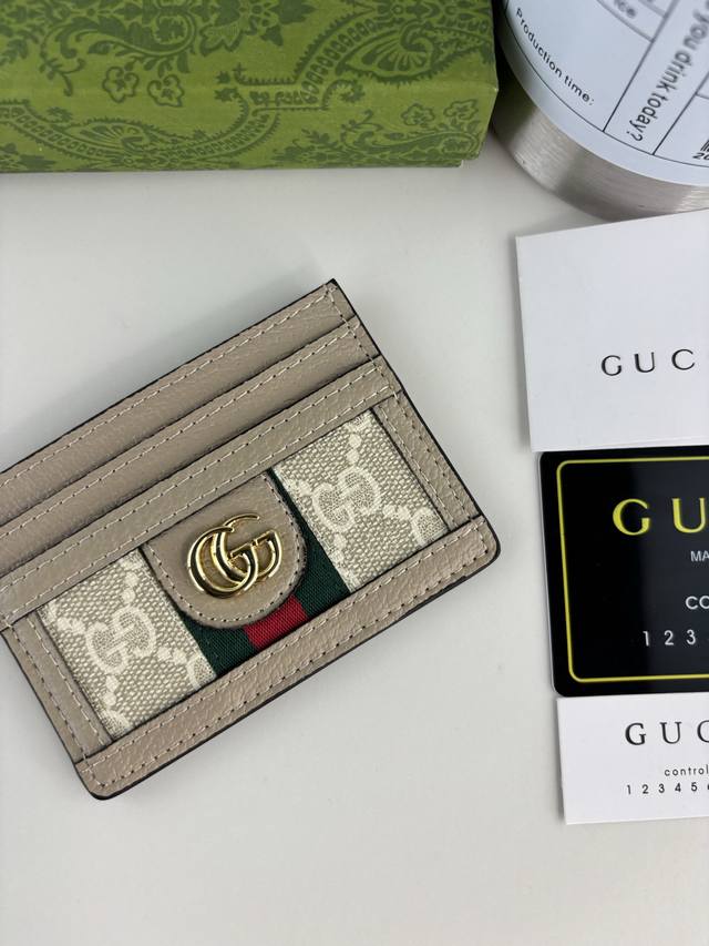 Guccl's official website is simultaneously releasing the new Ophidia series small card holder. Made with Ggsupreme premium PVC fabric and featuring the iconic double G hardware, it boasts a classic red and green webbing. Item number: 523159. Dimensions: 10cm x 7cm x 0.5cm. Color: Khaki.