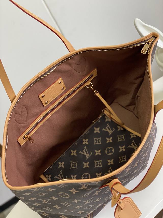Haiyuan, individual home photos, semi-steel 163 chip Nevereverfull handbag M14023, vintage full leather. Inspired by the practical and versatile Neverfull handbag, Pharrell Williams presents the Nevereverfull handbag. This handbag features clean lines, a Monogram print, and a spacious construction from supple cowhide leather. A zip closure and a detachable pouch ensure the safety of your belongings. Dimensions: 38 x 23 x 60 cm (H x W x Length).