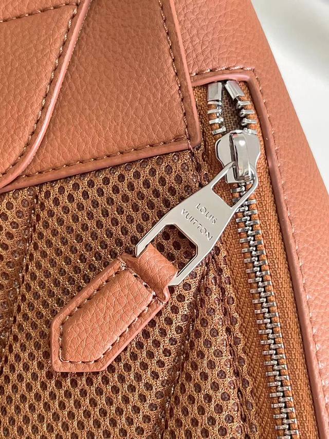 Haiyuan, individual photos, semi-steel 163 chip M15262 black 26023 brown. The Fastline backpack is crafted from soft and durable waxed cowhide leather, featuring a grained texture and embossed LV lettering for a modern business look. The spacious interior emphasizes functionality, with a padded inner pocket easily accommodating a 16-inch laptop. Dimensions: 43 x 15 x 38 cm (H x W x Length).