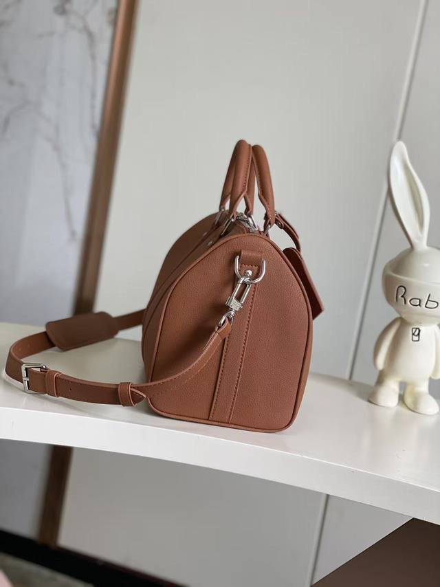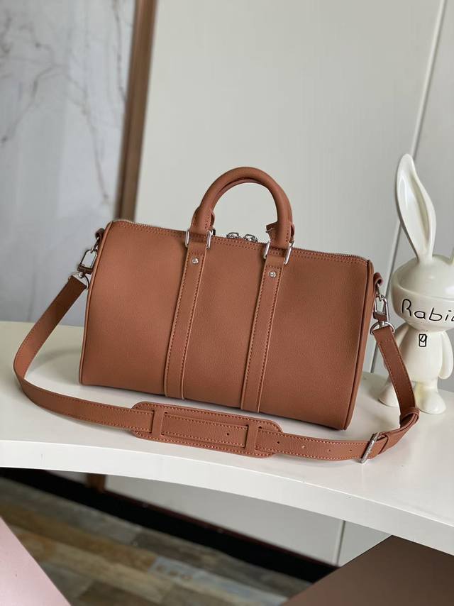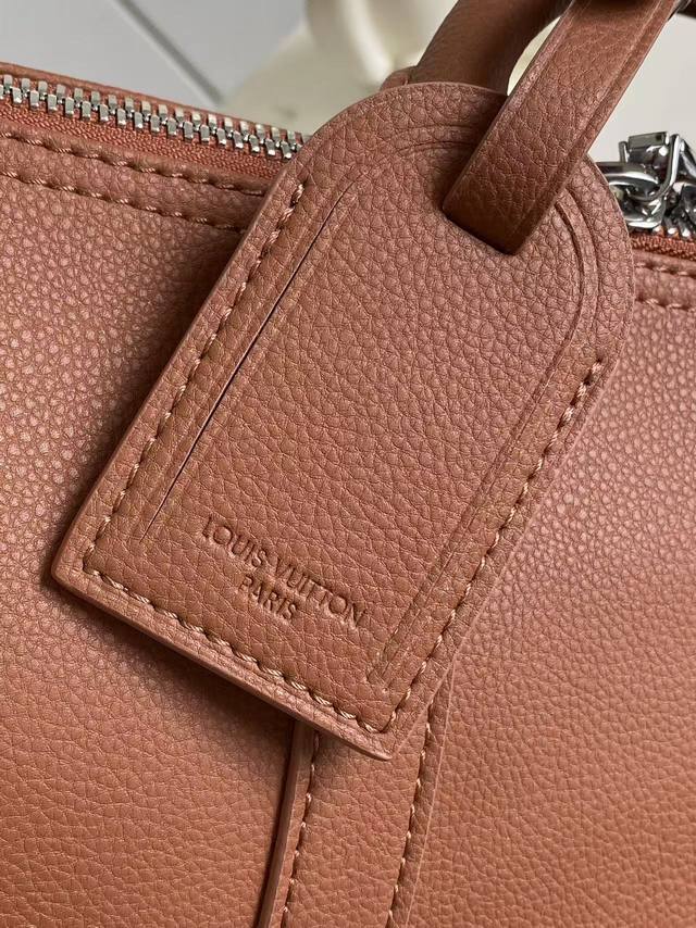 Haiyuan, individual photos, semi-steel 163 chip M25980 brown full leather travel bag, Keepall Bandouli