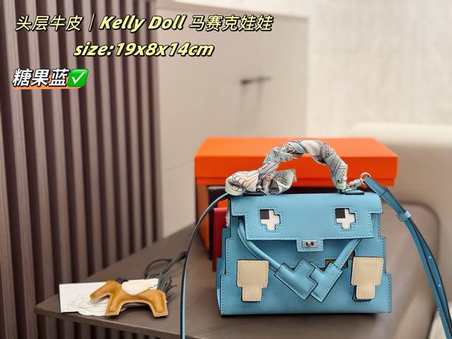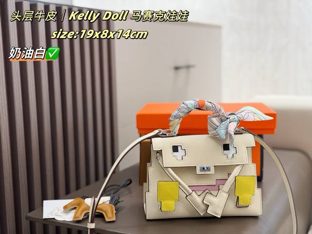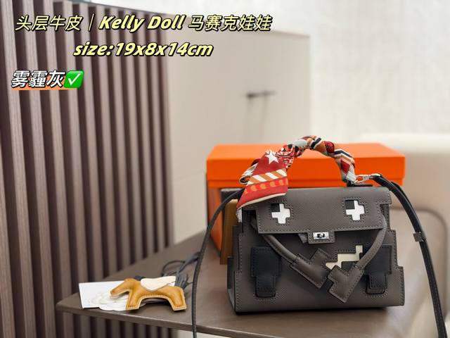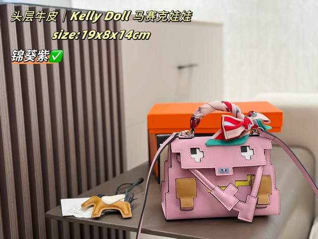 / Hermes Mosaic Doll Nine Colors Top Grain Cowhide with Silk Scarf Pony Ddd