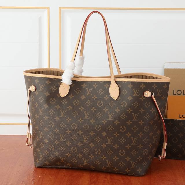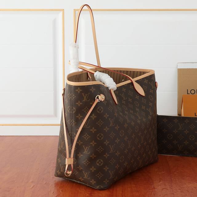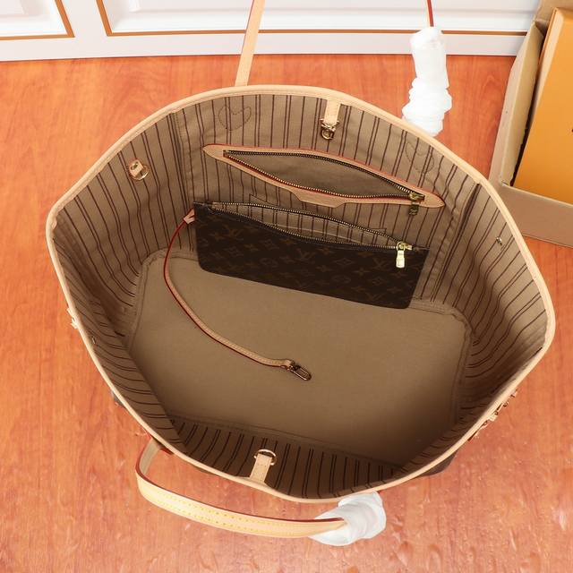 High-definition real object shooting with mother and daughter pouches! Original version 40997, the legendary Neverfull handbag always meets your various handbag needs. Large capacity without being bulky, structured yet soft to the touch, suitable for both home and travel. Tighten the side straps to instantly transform it into a stylish urban handbag. Loosen the straps, and it becomes a chic and practical tote bag. The slender leather handles are suitable for shoulder carrying or carrying on the arm. The one shown here is made of Damier Eb