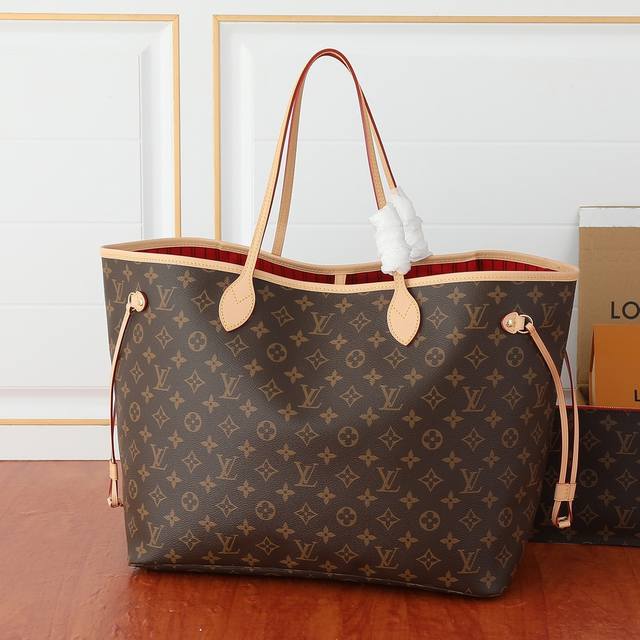 High-definition real object shooting with mother and daughter pouches! Original version 40997, the legendary Neverfull handbag always meets your various handbag needs. Large capacity without being bulky, structured yet soft to the touch, suitable for both home and travel. Tighten the side straps to instantly transform it into a stylish urban handbag. Loosen the straps, and it becomes a chic and practical tote bag. The slender leather handles are suitable for shoulder carrying or carrying on the arm. The version shown here is made of Damier Eb