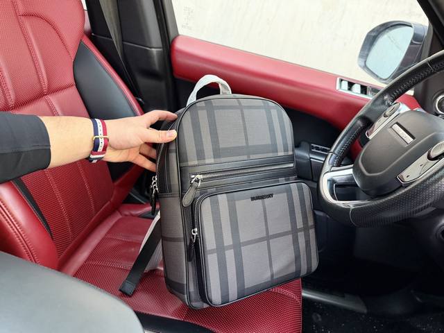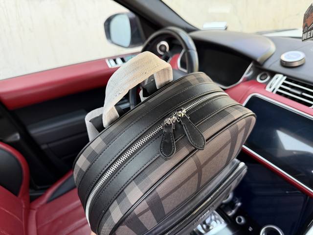 High-end new "Burberry" backpack. Features a checkered logo patch, zipper closure, polyester and polyurethane construction, and a brown color scheme. High-definition hardware with a logo, and a custom lining. Super smooth zippers, perfectly finished edges, and exquisite workmanship with attention to every detail! A must-have for trendy men and fitness enthusiasts. Dimensions: 30 x 38 x 15 cm.