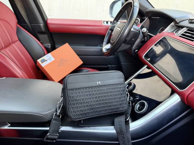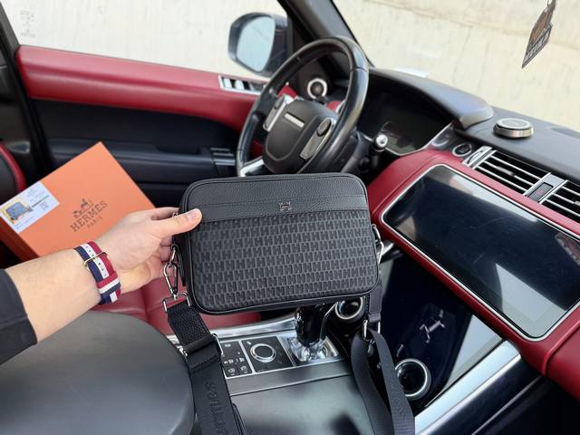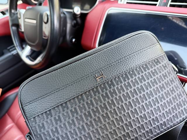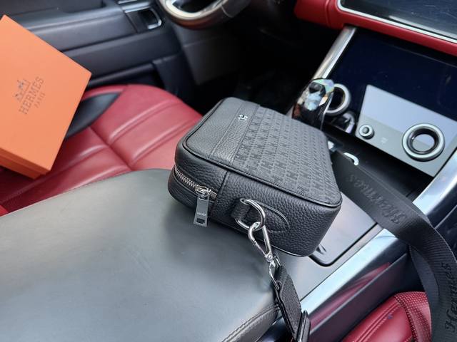 High-end new "Hermes" shoulder bag, Hermes cowhide crossbody bag, adjustable shoulder strap, magnetic closure, grained soft leather, top layer cowhide, men's black shoulder/crossbody bag, ultra-high definition hardware logo, smooth zipper, super smooth edge coating, exquisite workmanship, every detail is perfect! A must-have for men. Size: 24X16X6Cm. Comes with gift box.