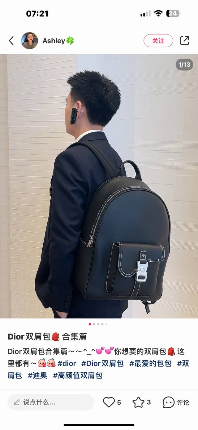 Saddle Zipper Backpack, Black Grained Calfskin Leather . Item Number: 1Adba212Ykk_H00N. This saddle zipper backpack is a new addition to the 2024 Winter Men's Collection, featuring a stylish original design that highlights the saddle style. Crafted from black grained calfskin leather with contrasting stitching, it offers ample space with one compartment for various everyday essentials. The front saddle flap pocket with a Christian Dior logo buckle can hold a wallet, keys, earphones, or a mobile phone for easy access. Practical and versatile, it's the perfect finishing touch to any outfit. Body: Cowhide leather, technical fabric Lining: Technical fabric, cowhide leather Main zippered compartment Interior flat laptop compartment Front flap pocket with Dior logo buckle Two side slip pockets Leather top handle Adjustable padded shoulder strap Padded mesh back with Dior logo Interior with Dior embossed logo Includes dust bag Made in Italy Dimensions: 33 x 43.5 x 19.5 cm (L x H x W) Main compartment can hold one 15-inch laptop, documents, and one tablet.