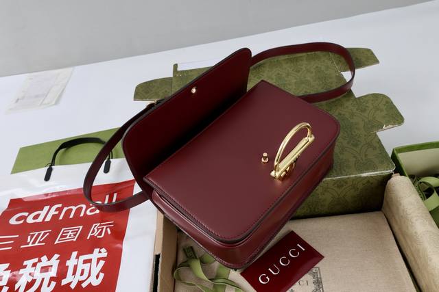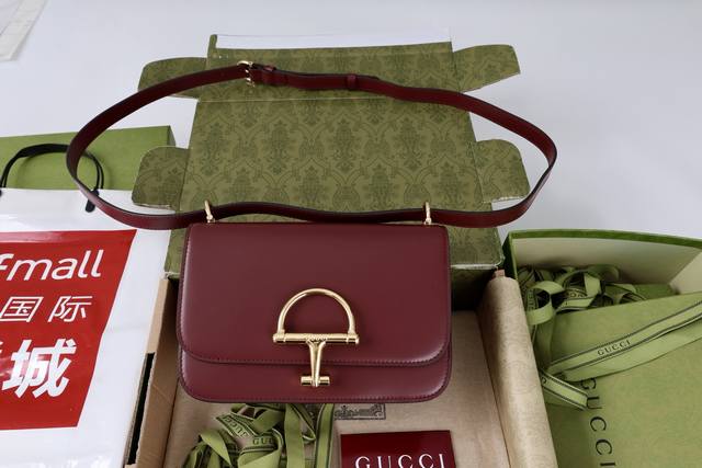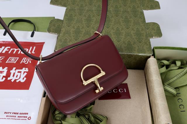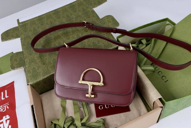 ) Description: From the 2025 Fall/Winter collection, the Gucci Siena small shoulder bag continues the evolution of Gucci's iconic horsebit element. This shoulder bag is crafted from fine, smooth leather, its structured shape incorporating details from the half-horsebit clasp design of the 1970s. (