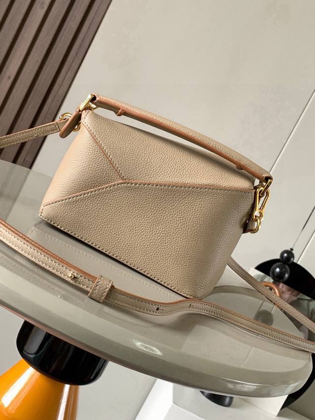 Hot-selling new version geometric bag, mini 18cm, original imported Nappa calfskin. The Puzzle handbag is the first tote bag launched by Creative Director Jonathan Anderson for L0Ewe. The rectangular shape and precise cutting techniques create the unique geometric lines of the Puzzle. This mini version is made of classic cowhide leather. The mini Puzzle can hold, for example, a small vertical wallet, most sizes of mobile phones up to 6.1 inches, and a sunglasses case. It can be carried crossbody, over the shoulder, by hand, or by the top handle. The detachable shoulder strap makes the bag's weight almost negligible. It's super practical. It can carry your mobile phone, small wallet, lipstick, and powder compact without feeling cumbersome. Start your carefree and happy life from now on. XS and Plus sizes are also OK. Size: 18