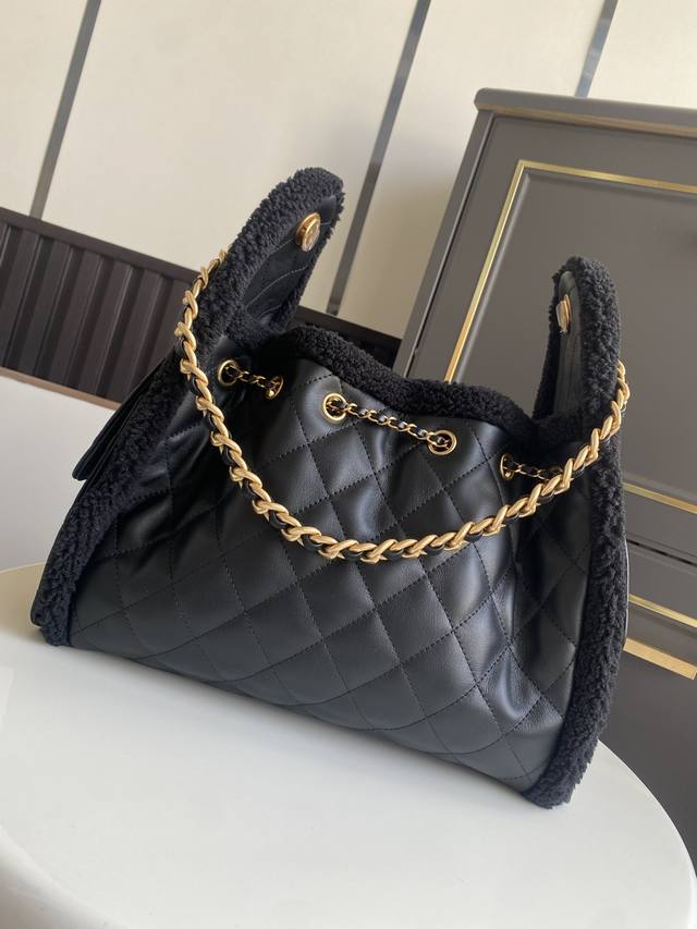 This shopping bag is special because it's made of imported Italian cowhide with edging and decorated with special autumn/winter fur trim.