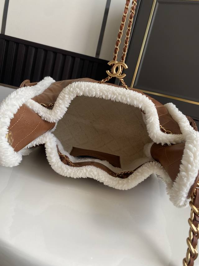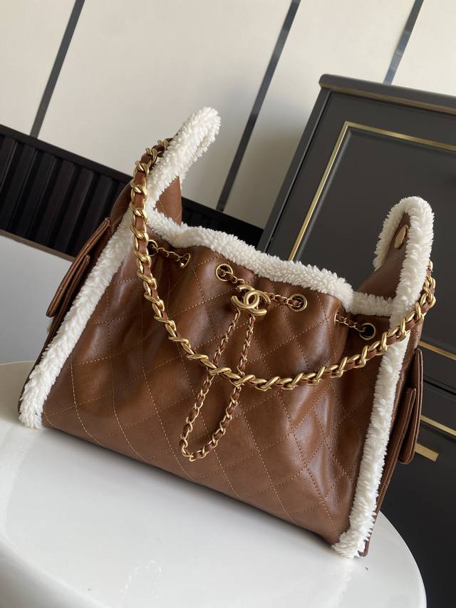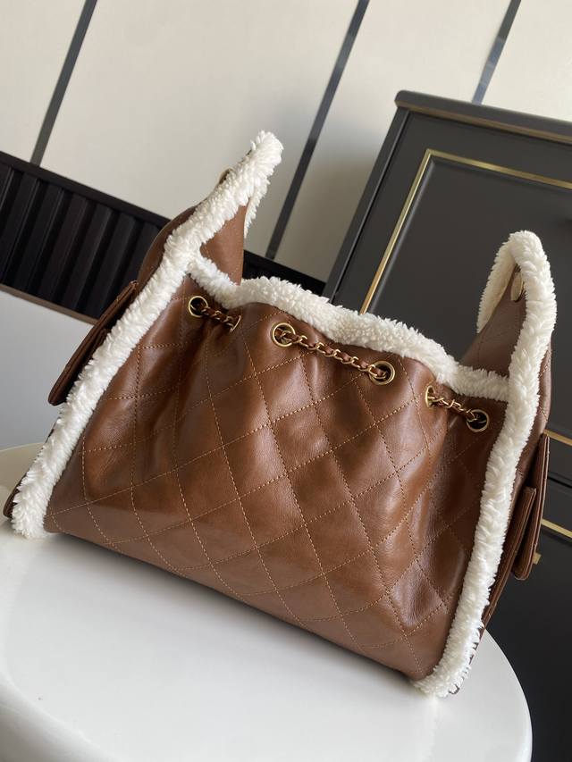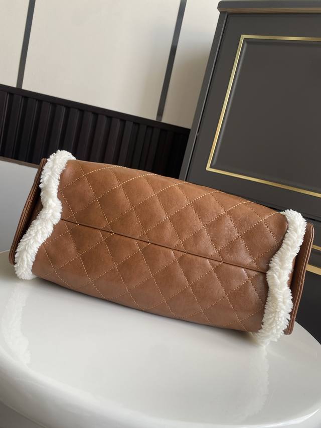 This shopping bag is special because it's made of imported Italian cowhide with trim and decorated with special autumn/winter fur.