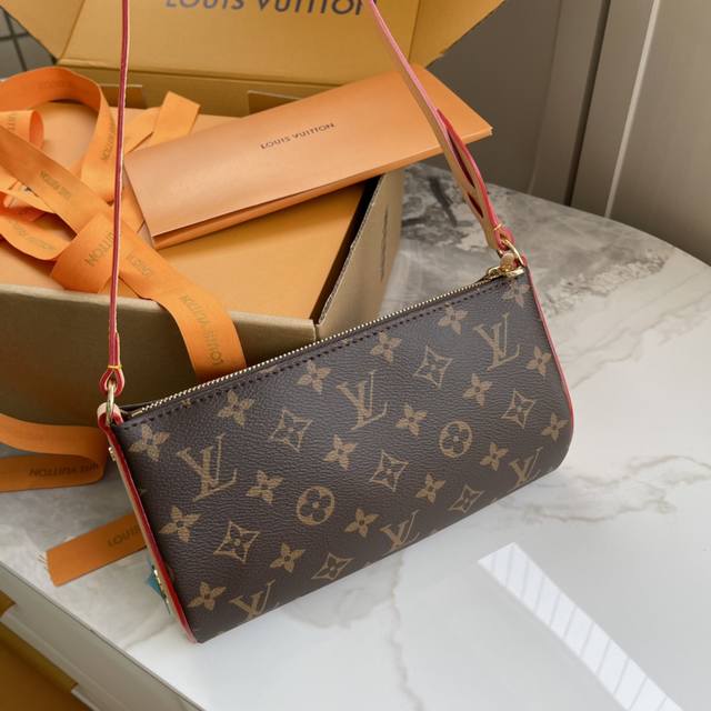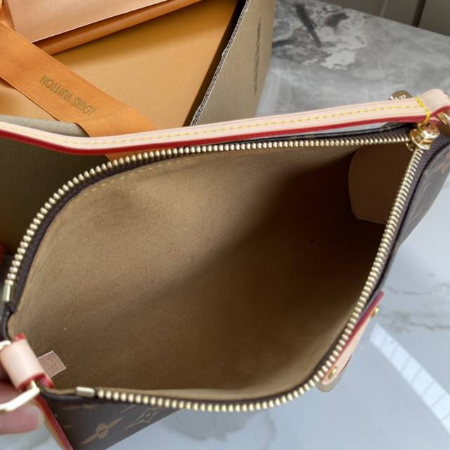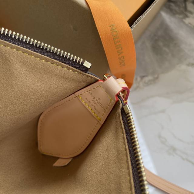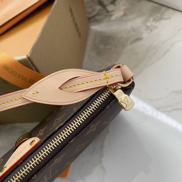 Internal Price P Style No.: M47123 Original Enhanced Version Exclusive Real Shot Background Image The Pochette Tirette handbag, crafted from Monogram canvas, presents a relaxed silhouette, ushering in Louis Vuitton's Spring/Summer runway show with an avant-garde style. Leather trim accentuates the marquise-shaped profile of the side, reminiscent of the brand's zipper pull, while a striking padlock and a detachable, adjustable leather shoulder strap add rich detail. 22 x 12 x 5.5 cm Length x Height x Width