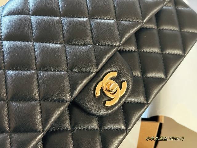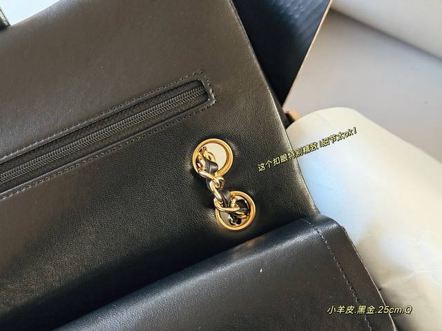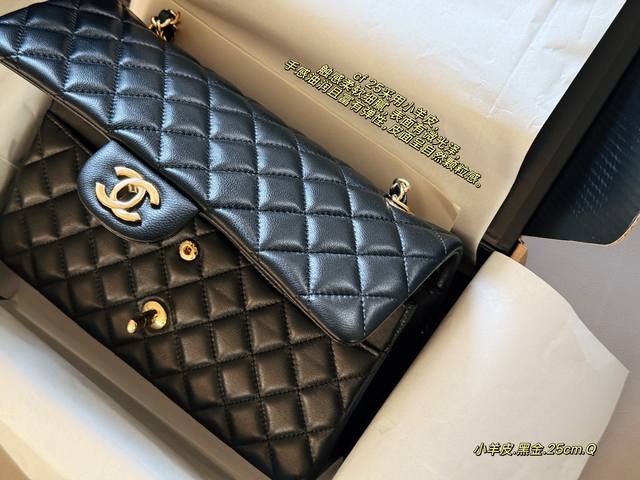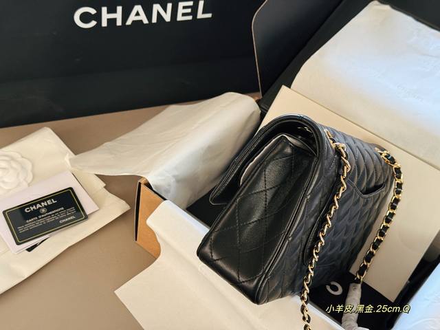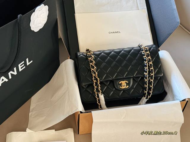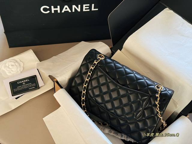 Lambskin Leather Bag with Box Size: 25*16cm We always put a lot of effort into making Chanel-style leather bags, which are far superior to other products on the market. The black and gold lambskin bag is very comfortable! For the gentlest Chanel-style girls.