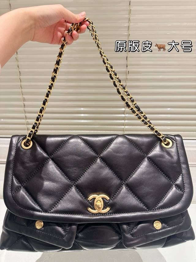 Large Chanel Pocket Bag in Top Grain Leather. Effortlessly chic and easy to carry. A delightful surprise when worn. Sophisticated yet effortlessly stylish. A bag I've completely fallen in love with. Size: 39.22