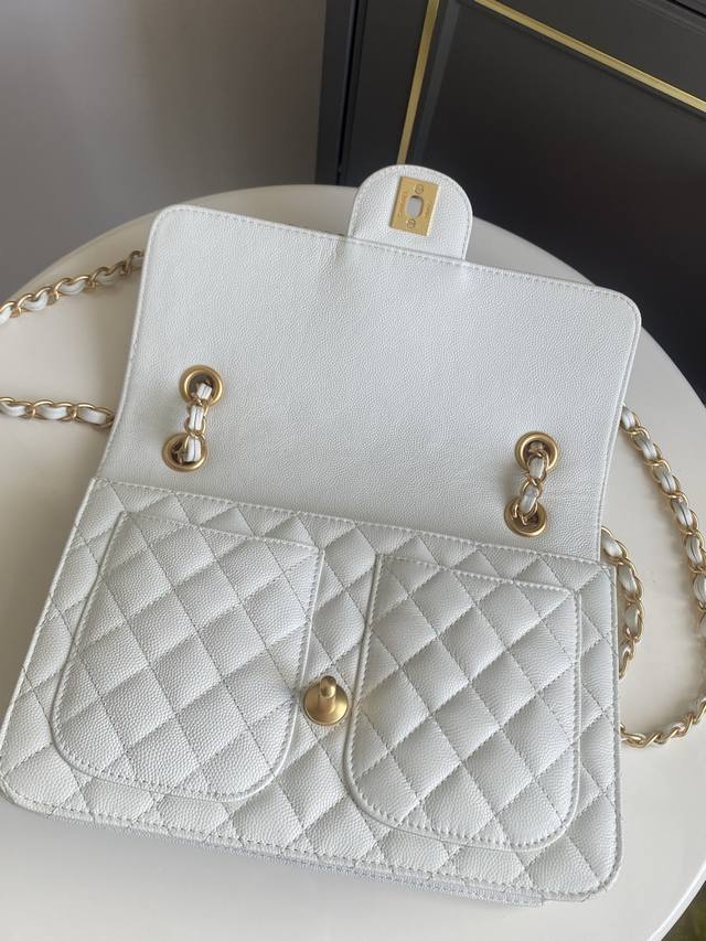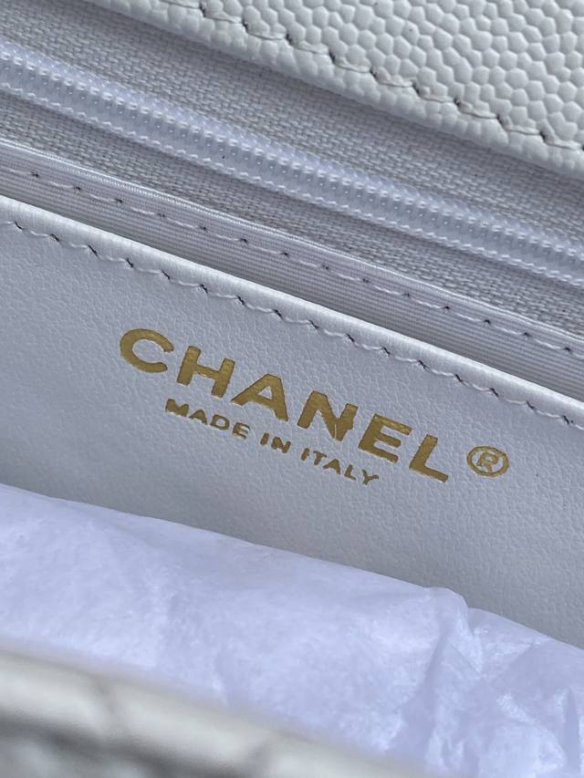 Black Caviar Ghw. Very similar to the Mini CF in its diamond quilted design and double C logo, making it highly recognizable! The chain is adjustable, so it can be carried by hand, over the shoulder, or crossbody, making it suitable for everyday commutes or formal occasions. It has a moderate capacity, easily holding a phone, lipstick, and power bank